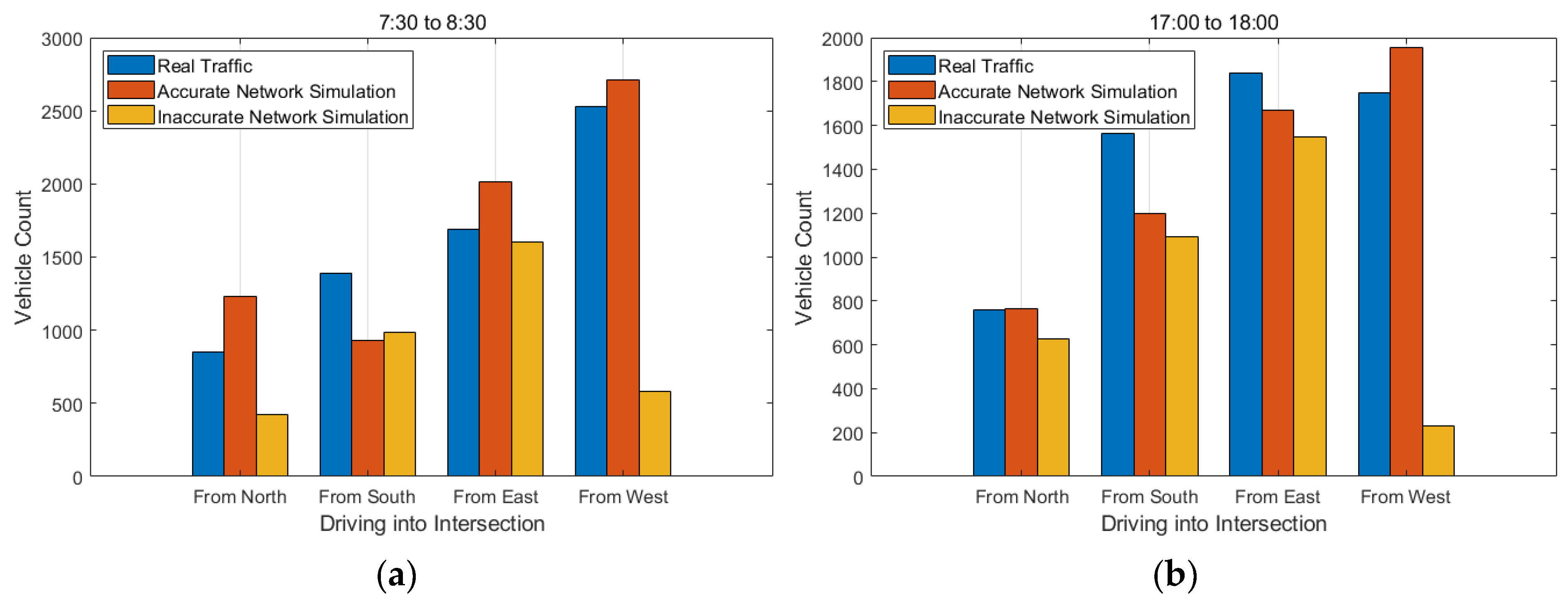 2.5. Effect of Using Actual Traffic Lights on Simulation Accuracy