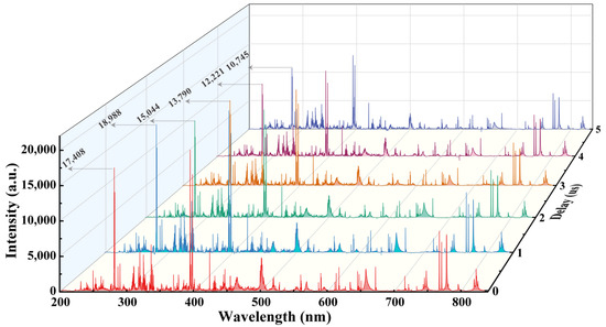 For lignite under Gaussian beam-induced LIBS, Figure A1 shows the dependence of spectral emission intensity on the detector gate delay. As the delay increases from 0 to 5 µs, the emission intensity rises to a maximum and then decreases. The characteristic line intensity peaks at a delay of 1 µs, consistent with the vortex beam-induced LIBS results reported above. This indicates that, for lignite, Gaussian beam-induced LIBS achieves optimal emission at a gate delay of 1 µs relative to the laser pulse.