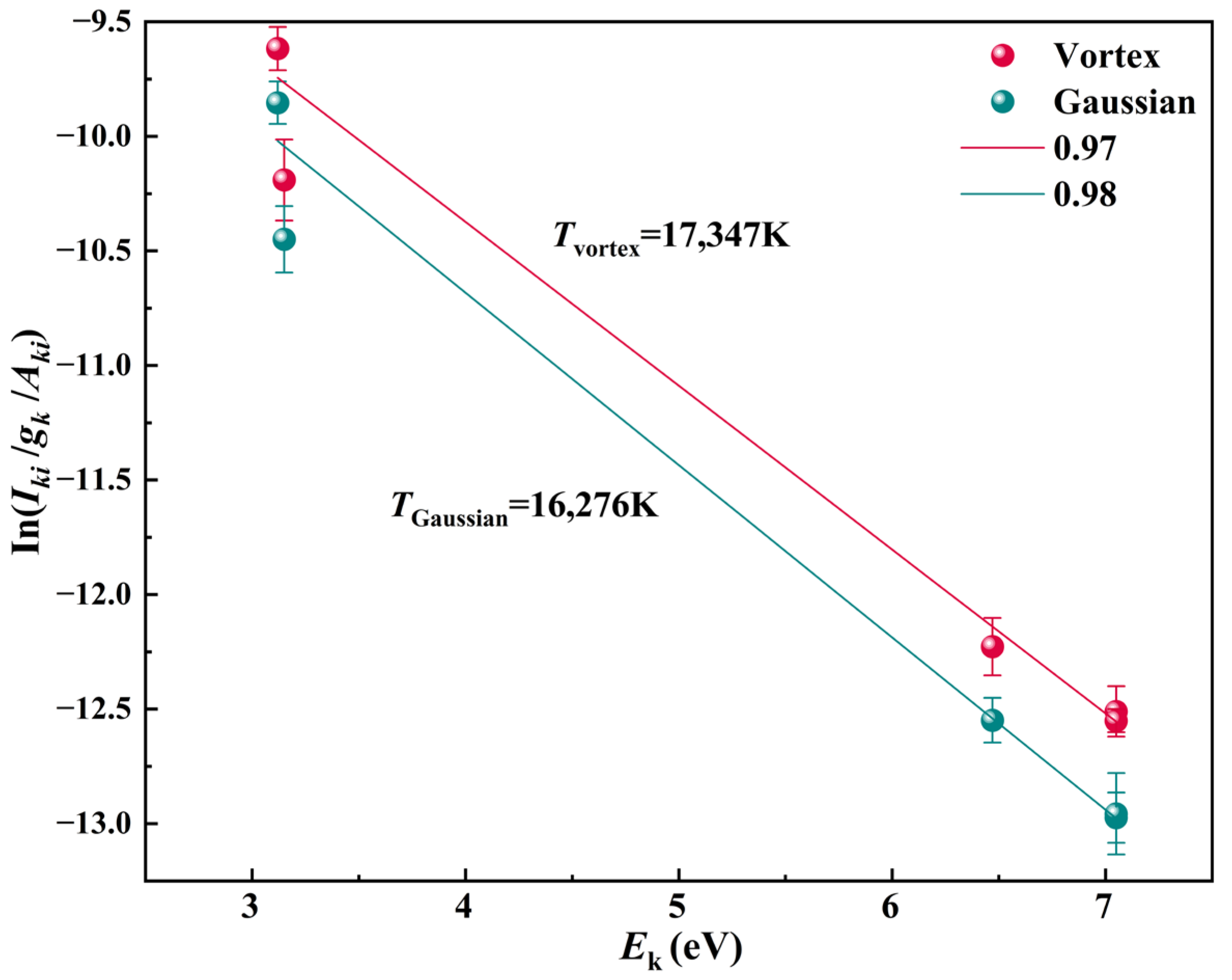 - Fu, Y.; Lin, C.; Sun, D.; Han, W.; Chang, J.; Ma, X.; Su, M. Effect of Vortex Beam Shaping on Determination of Trace Elements in Al Alloy by Double Pulse Laser-Induced Breakdown Spectroscopy. Plasma Sci. Technol. 2025, 27, 095503. [Google Scholar] [CrossRef]