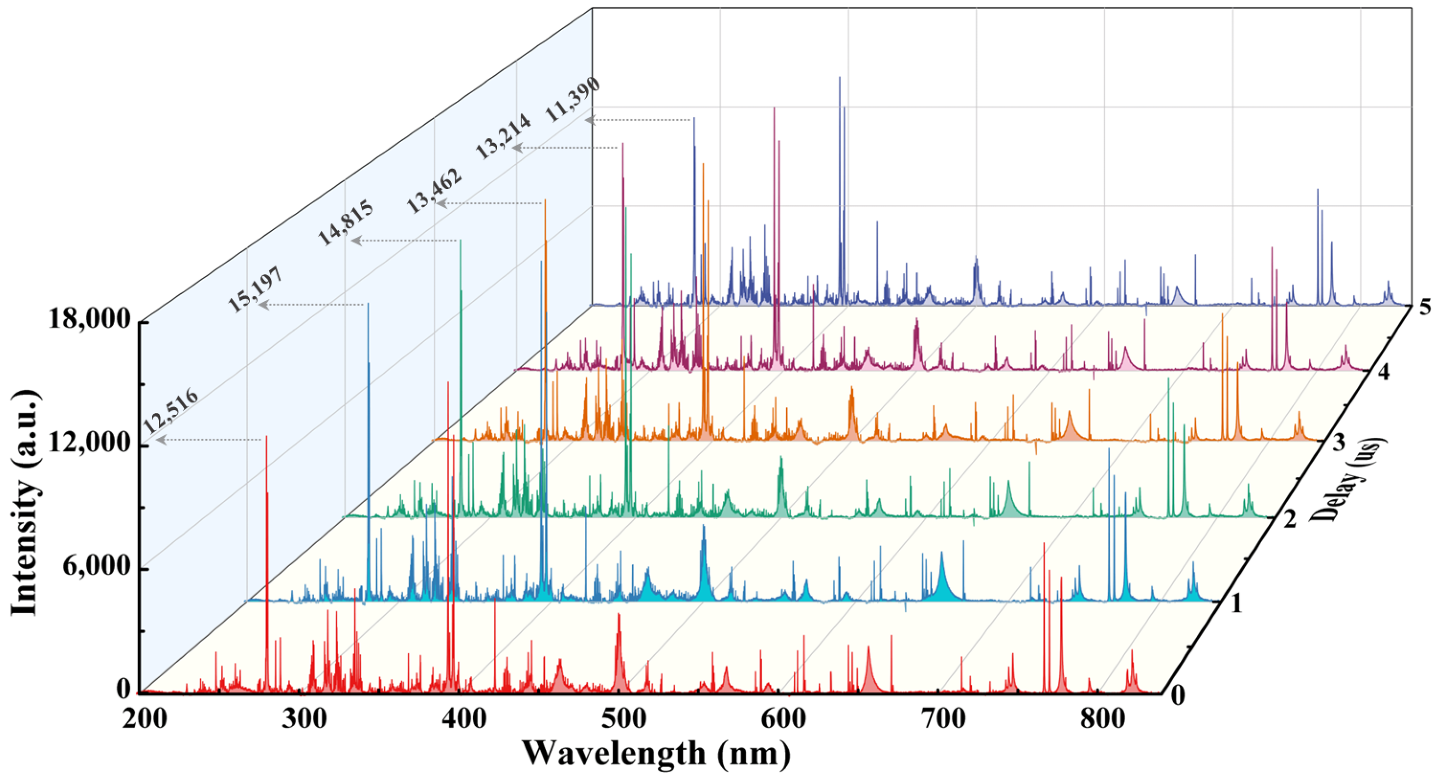 - Li, A.; Chai, S.; Peng, H.; Zhao, Z.; Ren, J.; Wu, W. Laser-Induced Breakdown Spectroscopy Using 2D Structured Light: A Case of Spectral Signal Enhancement on Metal Samples. Anal. Chem. 2025, 97, 3253–3262. [Google Scholar] [CrossRef]