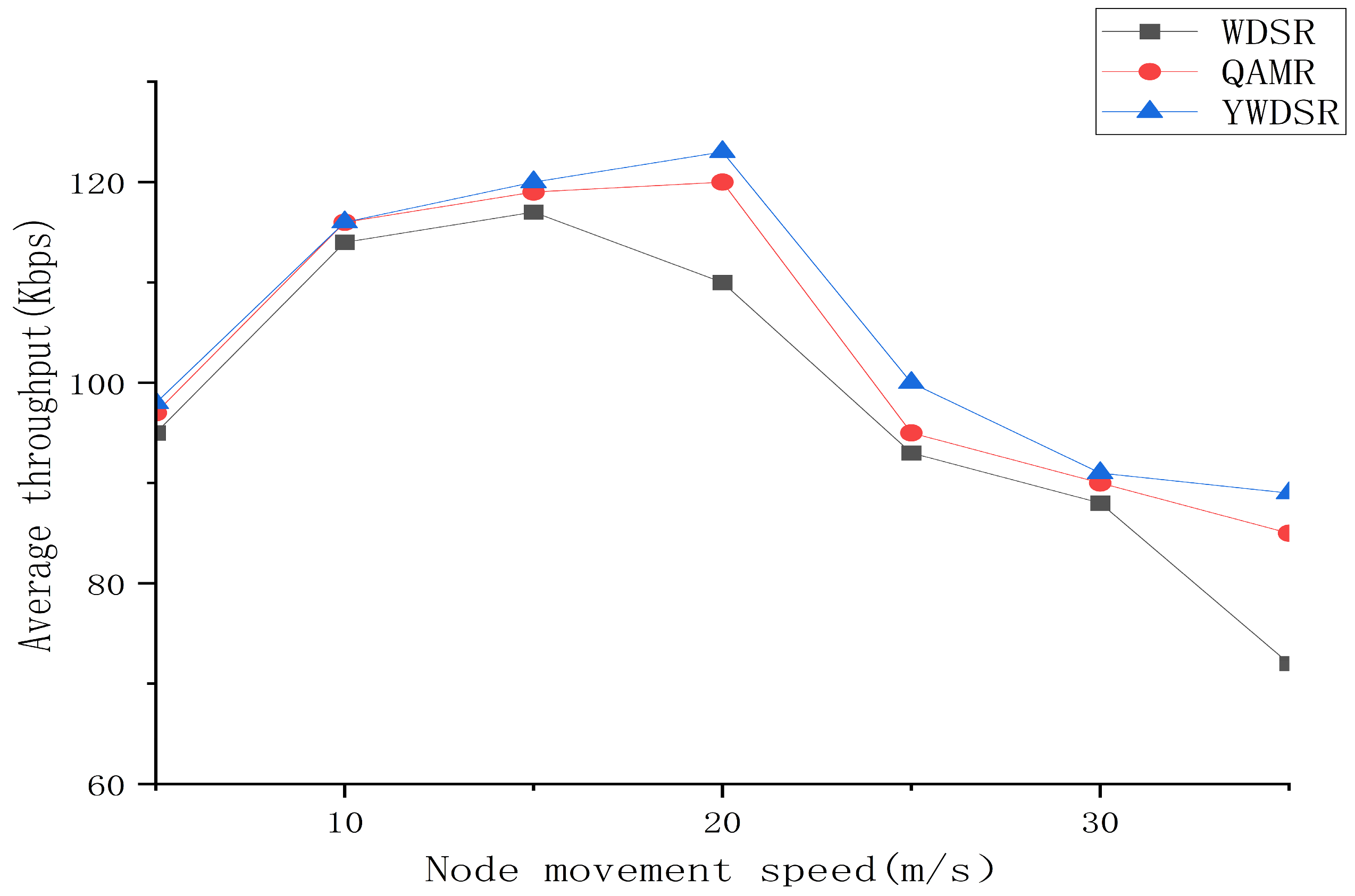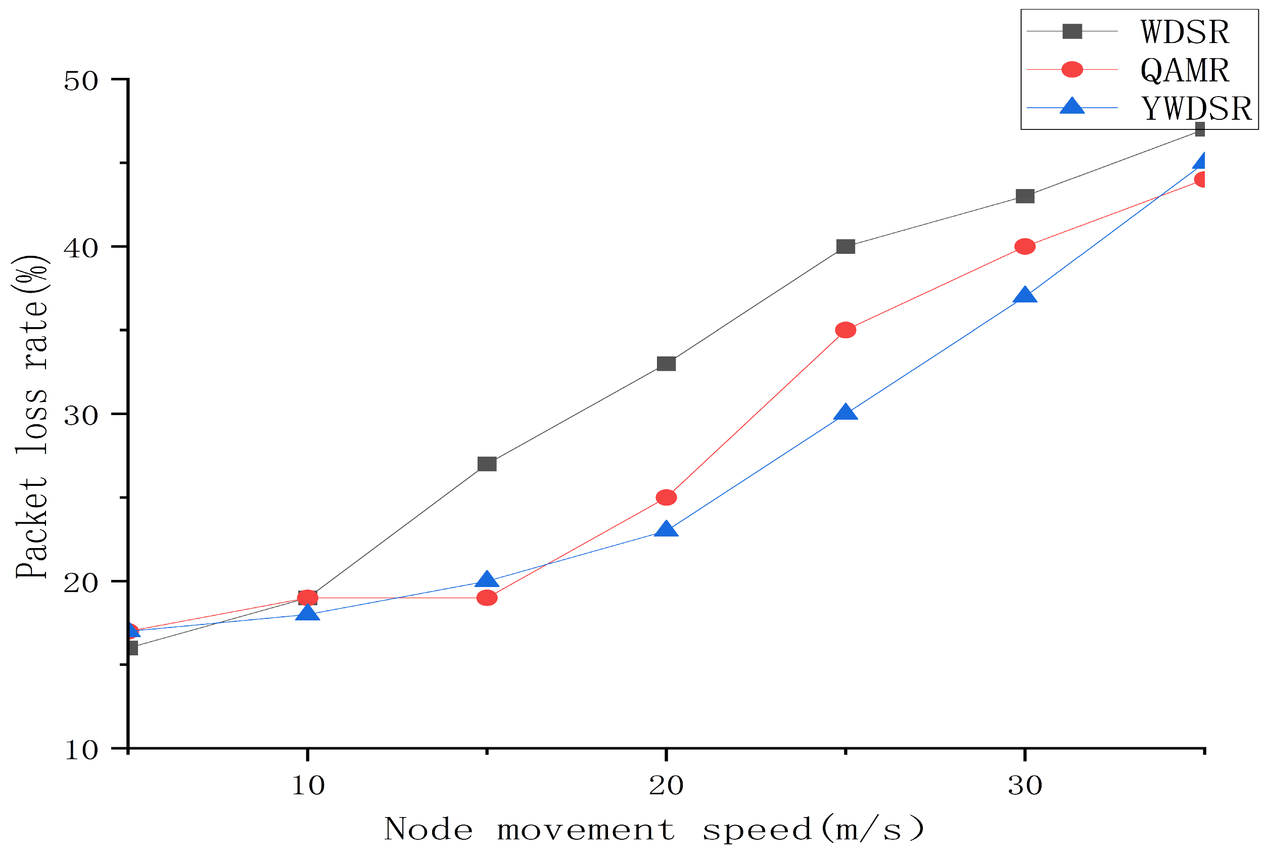 - To further enhance the network performance of the WDSR routing algorithm when the network congestion is high, based on the WDSR algorithm, by improving the convergence factor in the whale algorithm and introducing inertia weight, a multipath QoS routing algorithm (YWDSR) based on the improved whale optimization algorithm is proposed.