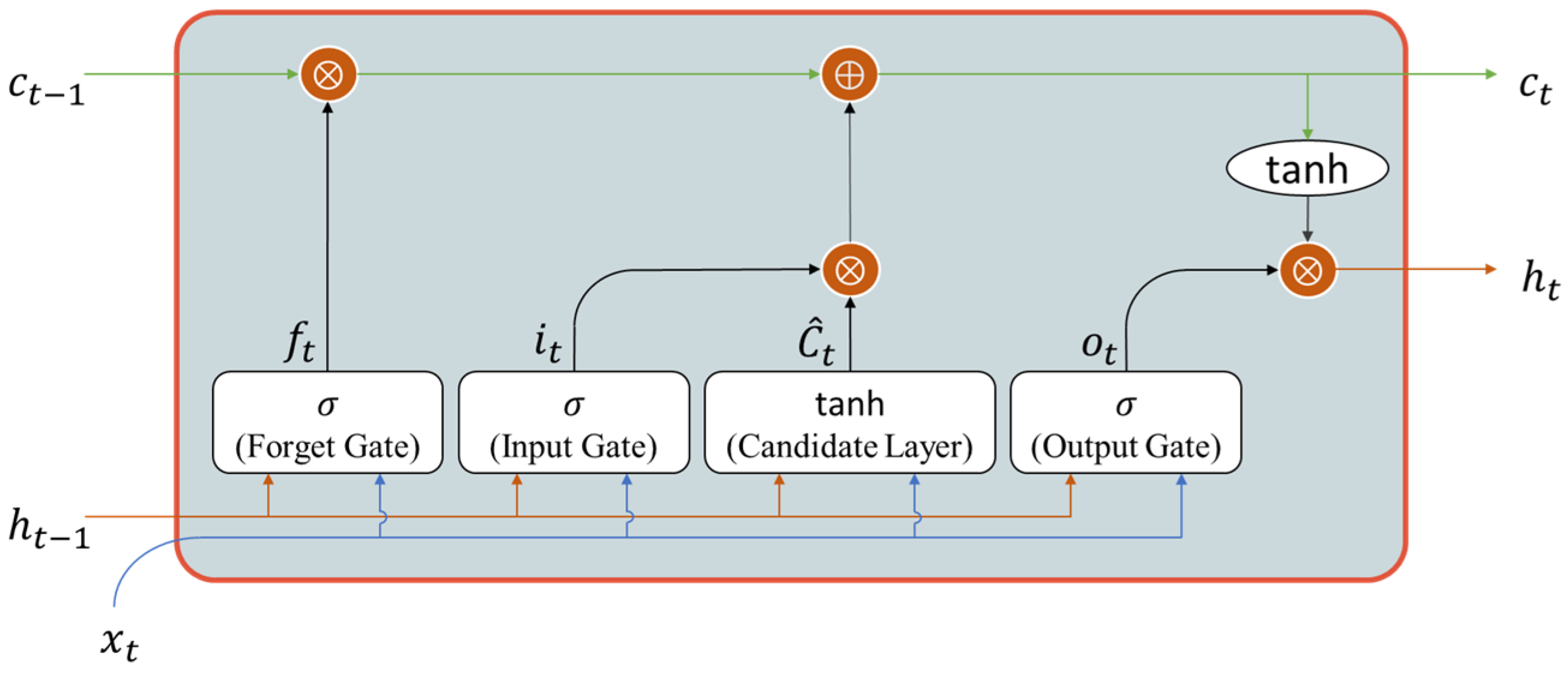 46], which is an improved version of the recurrent neural network (RNN). A single hidden state in traditional RNNs can make information disappear in the long term. LSTM can address this problem by introducing a memory cell to hold information for an extended period. Therefore, LSTM architectures are capable of learning long-term dependencies in sequential data, which is valuable for applications of time series analysis and other temporal pattern recognition tasks.