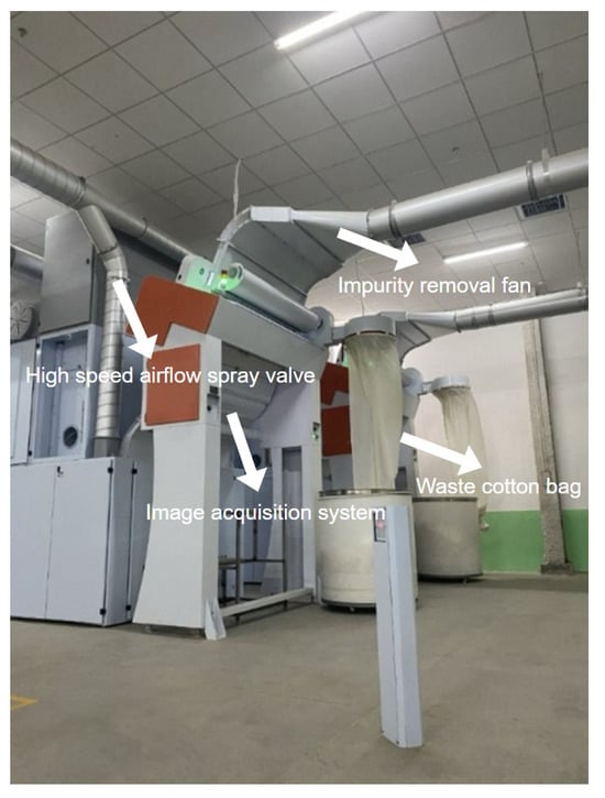 - Xu, W.F.; Hu, J.W.; Zhu, X.J.; Ye, J.J. Application Status of Machine Vision in Intelligent Spinning Production. Cotton Text. Technol. 2022, 50, 607. (In Chinese) [Google Scholar]