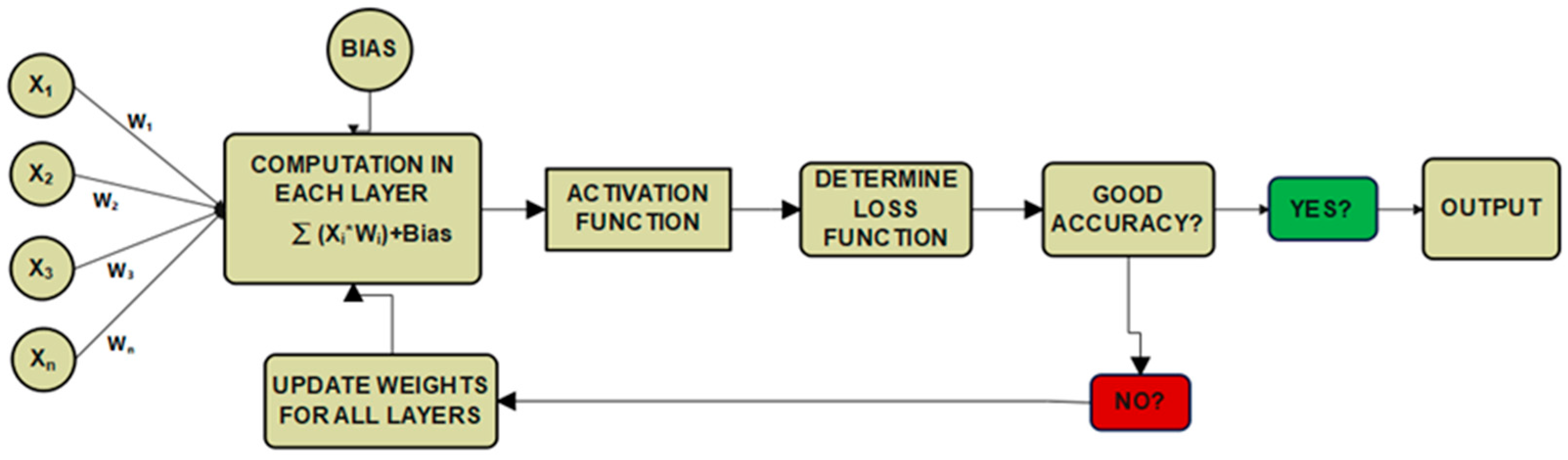 Figure 3 illustrates the process of a supervised artificial neural network with backpropagation.