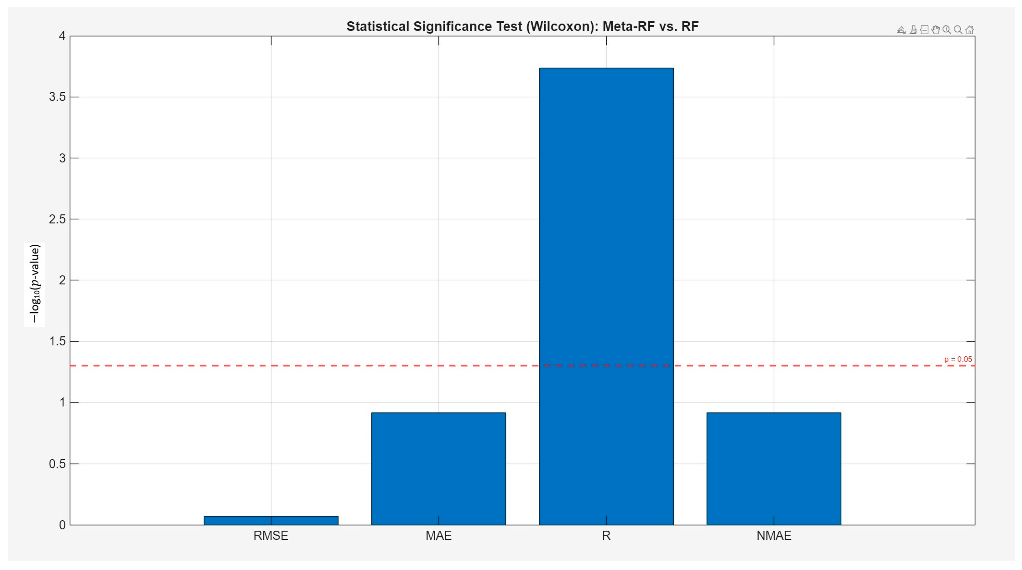 Figure 17. Results of the Wilcoxon Signed-Rank test comparing the performance of the Meta-RF and the individual RF models on the validation set.