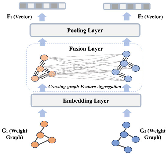 The structural features are equally important for representing binary functions. In Breg, a cross-graph neural network (CGNN) is employed to learn the structural features of the CFG. The input to the CGNN is the CFG after semantic feature extraction, and it outputs a 128-dimensional vector as the representation of the binary function. As shown in Figure 3, the CGNN consists of an embedding layer, a fusion layer, and a pooling layer.