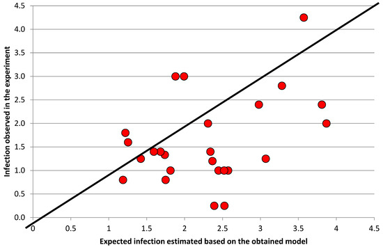 Figure 3. Expected infection estimated based on the obtained mathematical model taking into account statistically significant parameters.