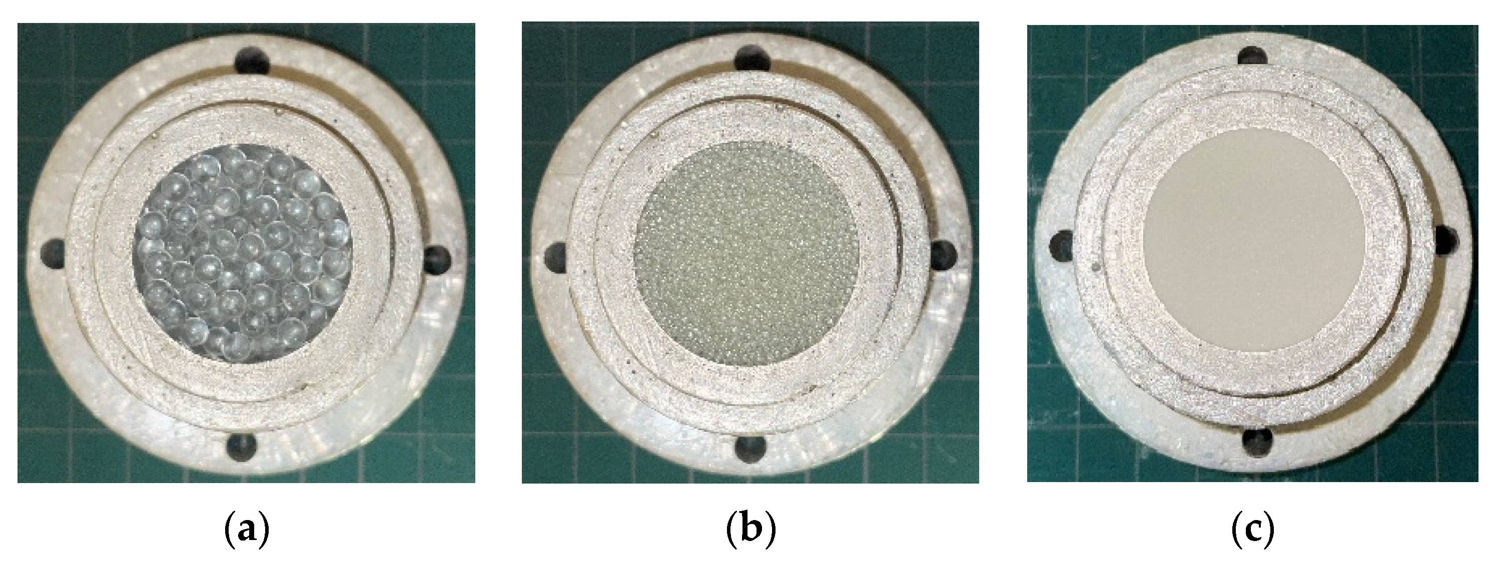 - Sikora, J.; Turkiewicz, J. Sound absorption coefficients of granular materials. Mech. Control 2010, 29, 149–157. Available online: https://journals.agh.edu.pl/mech/article/view/1725 (accessed on 10 July 2025).