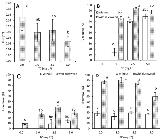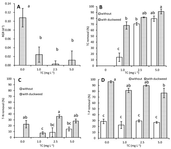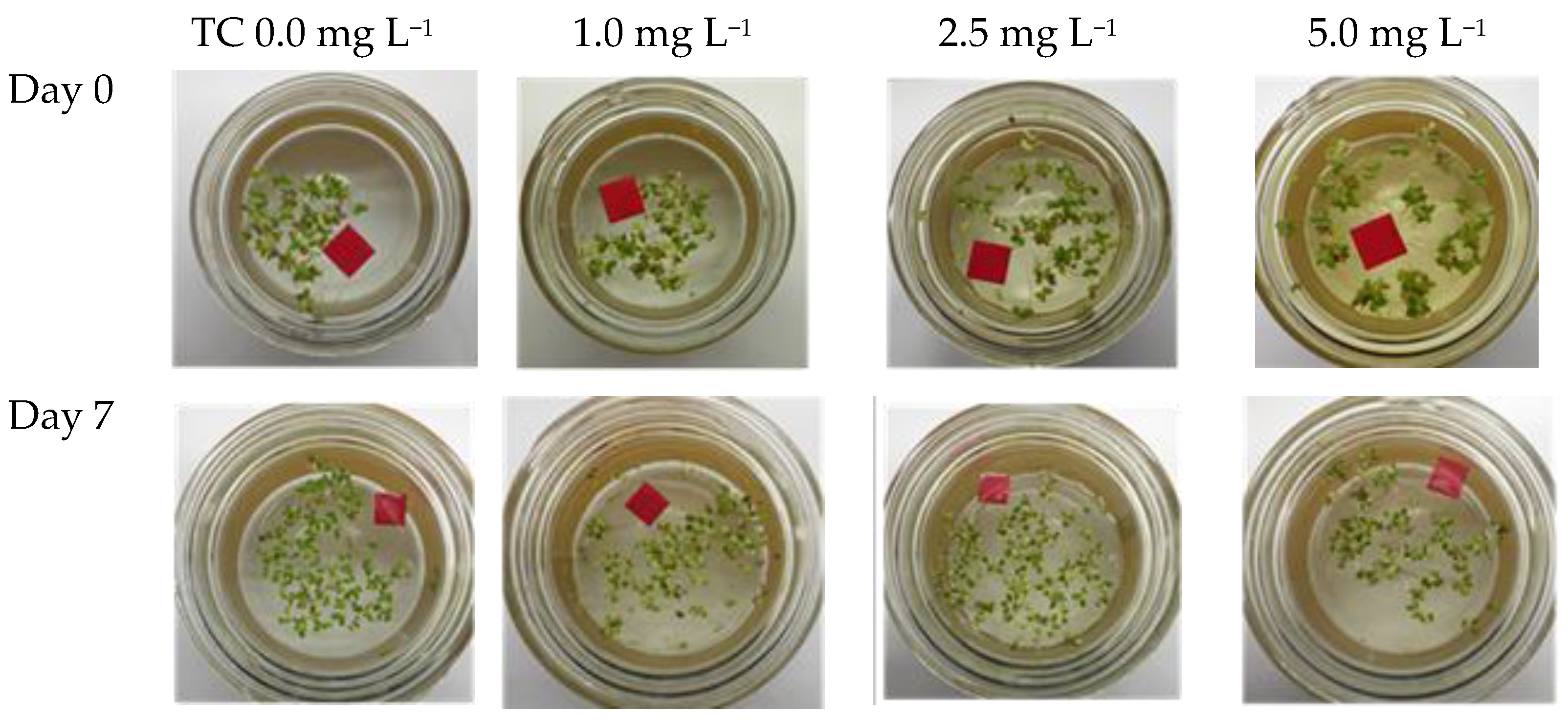 3.1. Effects of TC on Growth and Nutrient Removal by L. aoukikusa