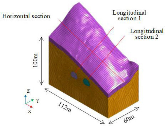 (2) Interface elements between different geological layers were not defined, and relative slip between materials was neglected.