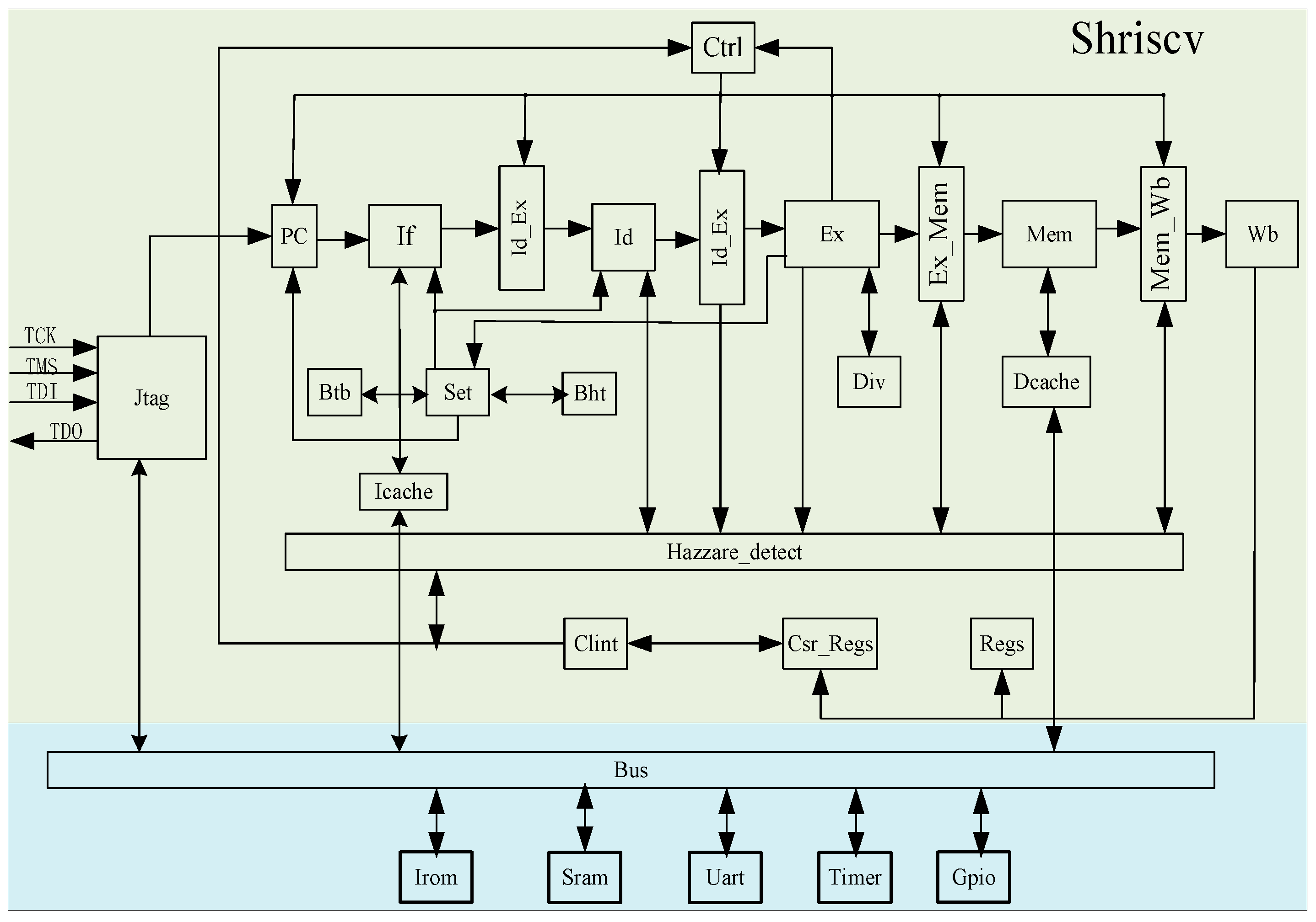 - Li, D.; Cao, K.; Qu, M.; Wang, F. Hardware/Software Co-Emulation Verification of a Five-Stage Pipeline RISC-V Processor. J. Jilin Univ. (Inf. Sci. Ed.) 2017, 35, 612–616. [Google Scholar] [CrossRef]