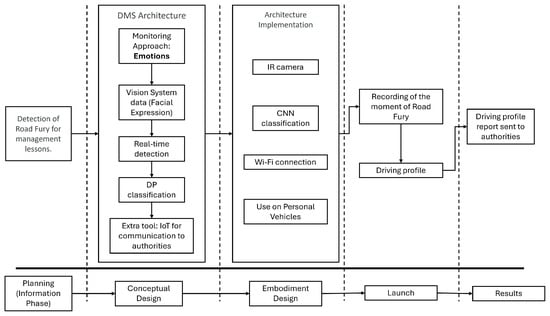 Considering the 60 documents selected for this review, a more in-depth analysis was conducted. This analysis involved the development of a framework for DMSs, outlining a basic architecture that spans from monitoring approaches to classifiers and the target behaviors or states to be identified. Similarly, the process for implementing these systems was examined, taking into account both the intended application of the DMS and its underlying architecture.