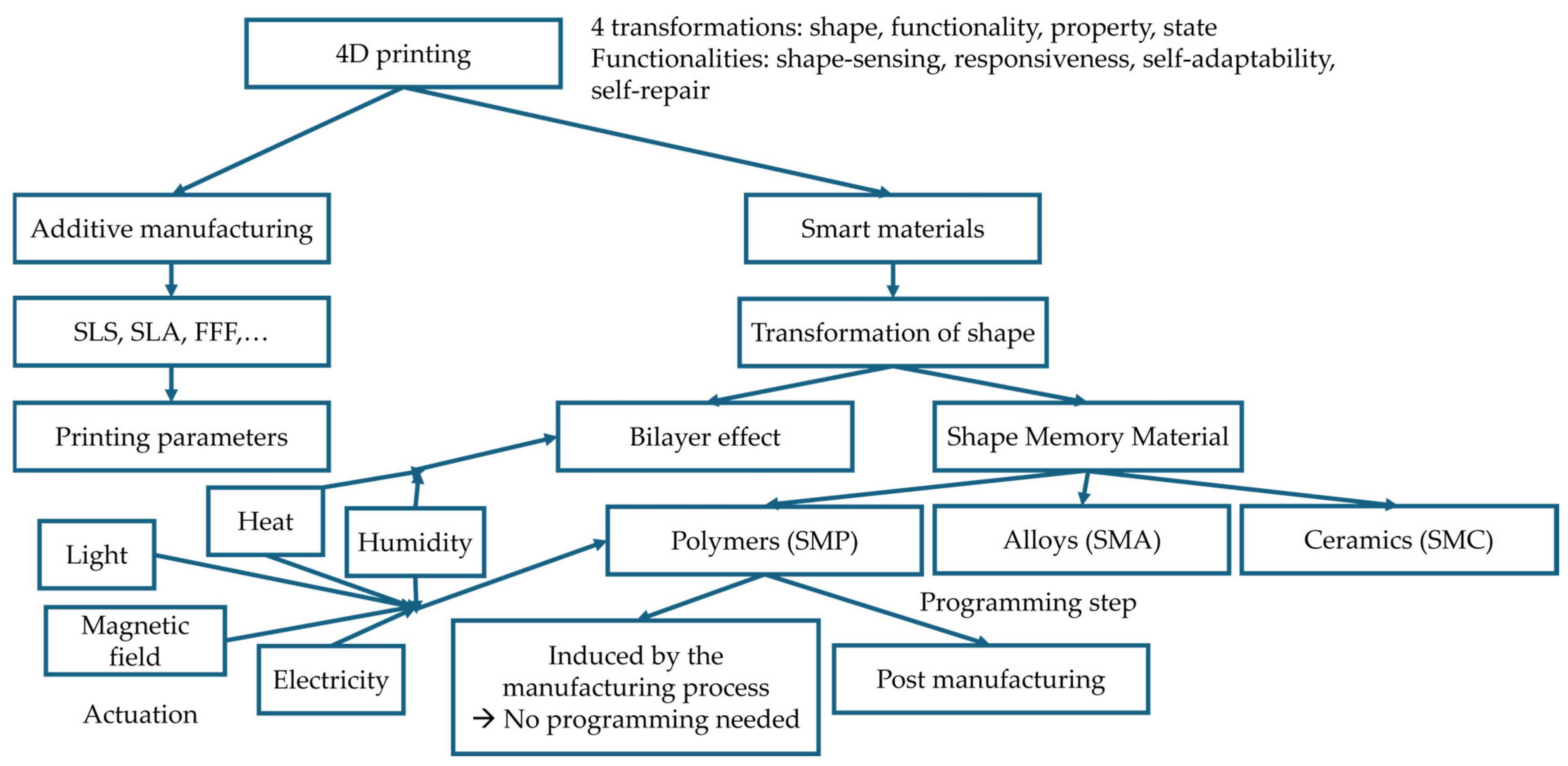 - Mitchell, A.; Lafont, U.; Hołyńska, M.; Semprimoschnig, C. Additive manufacturing—A review of 4D printing and future applications. Addit. Manuf. 2018, 24, 606–626. [Google Scholar] [CrossRef]