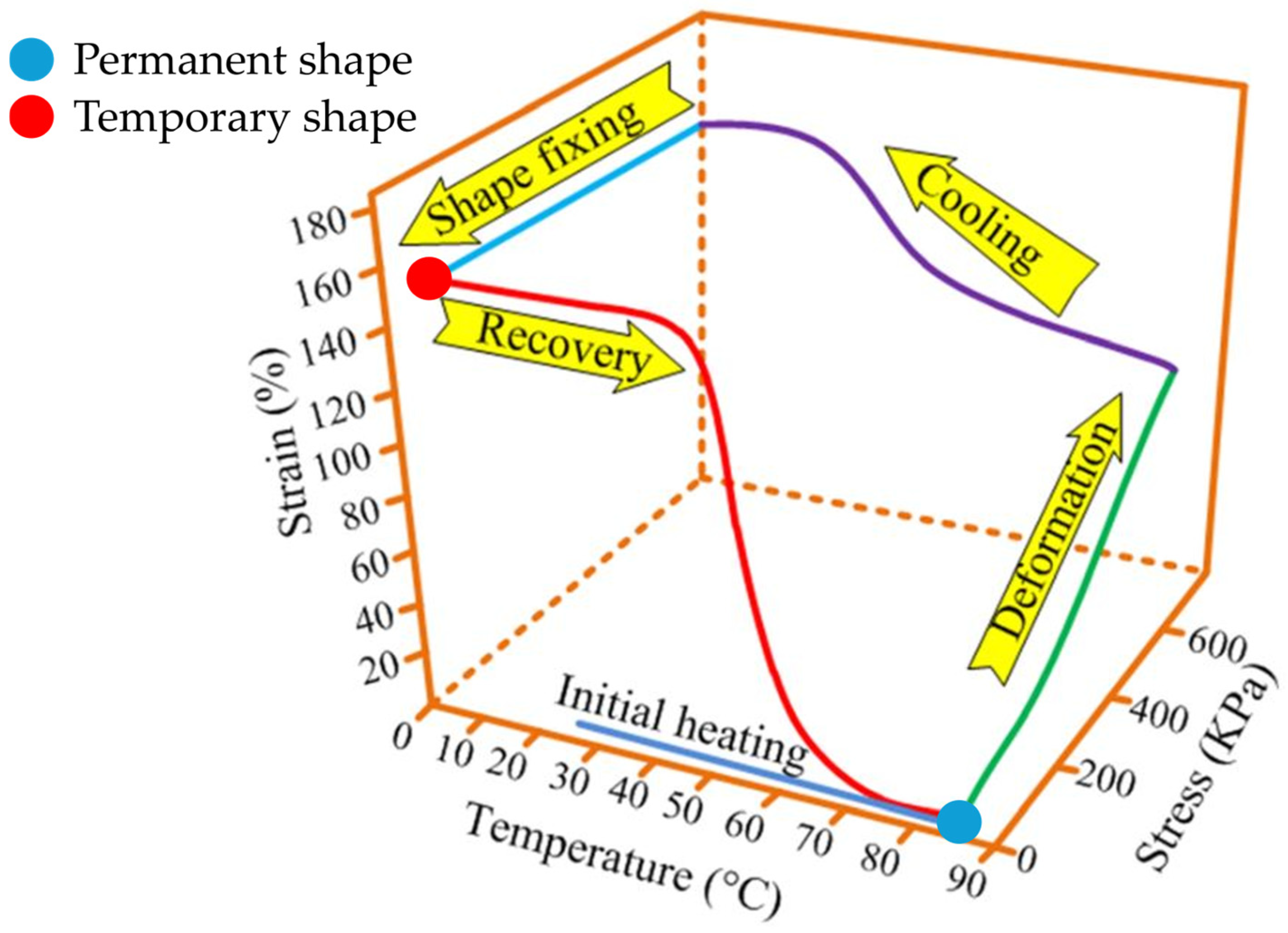 - Dai, L.; Song, J.; Qu, S.; Xiao, R. Triple-shape memory effect in 3D-printed polymers. Express Polym. Lett. 2020, 14, 1116–1126. [Google Scholar] [CrossRef]