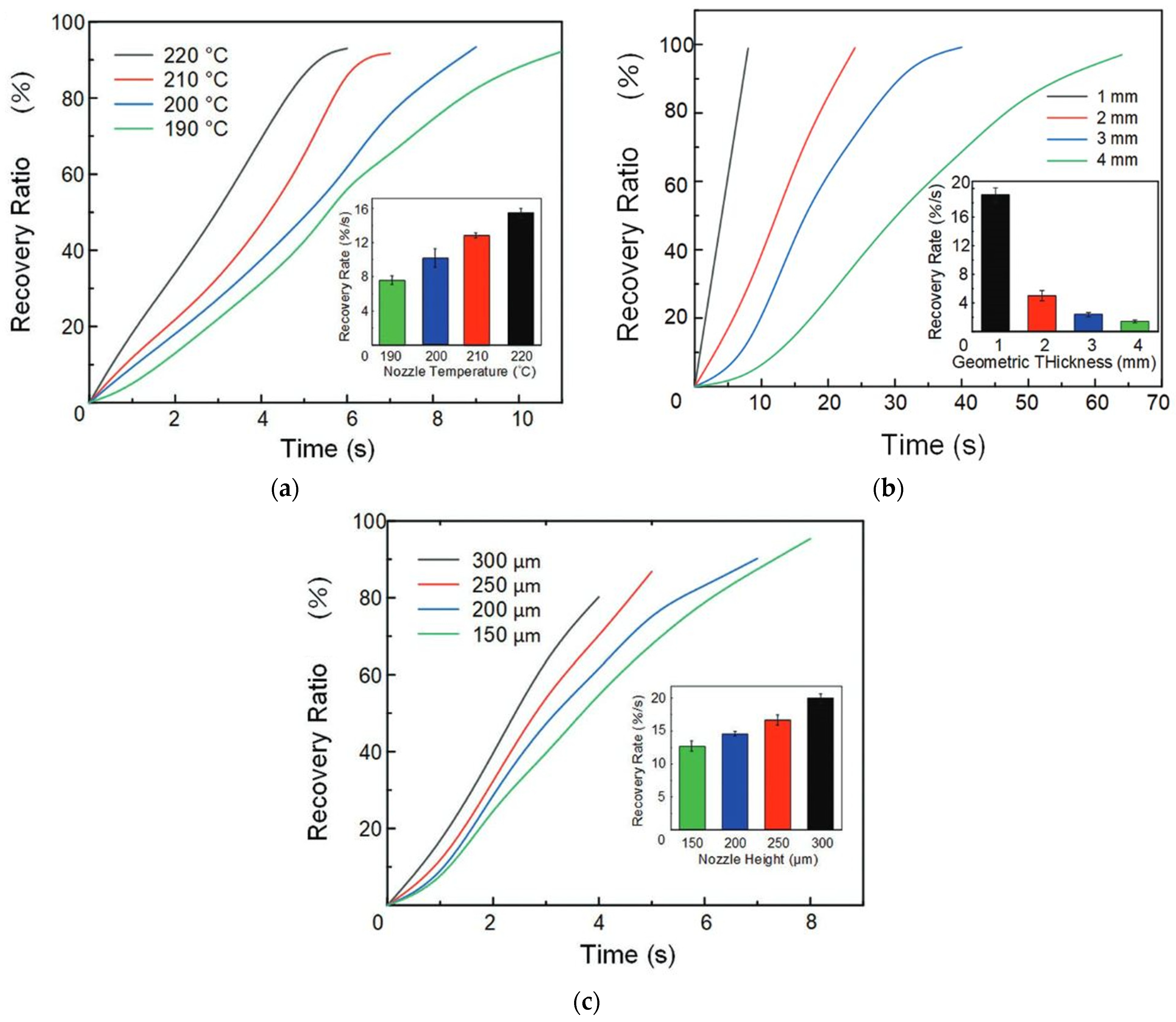 3.2. Four-Dimensional-Printed Thermosensitive Shape Memory Polymers