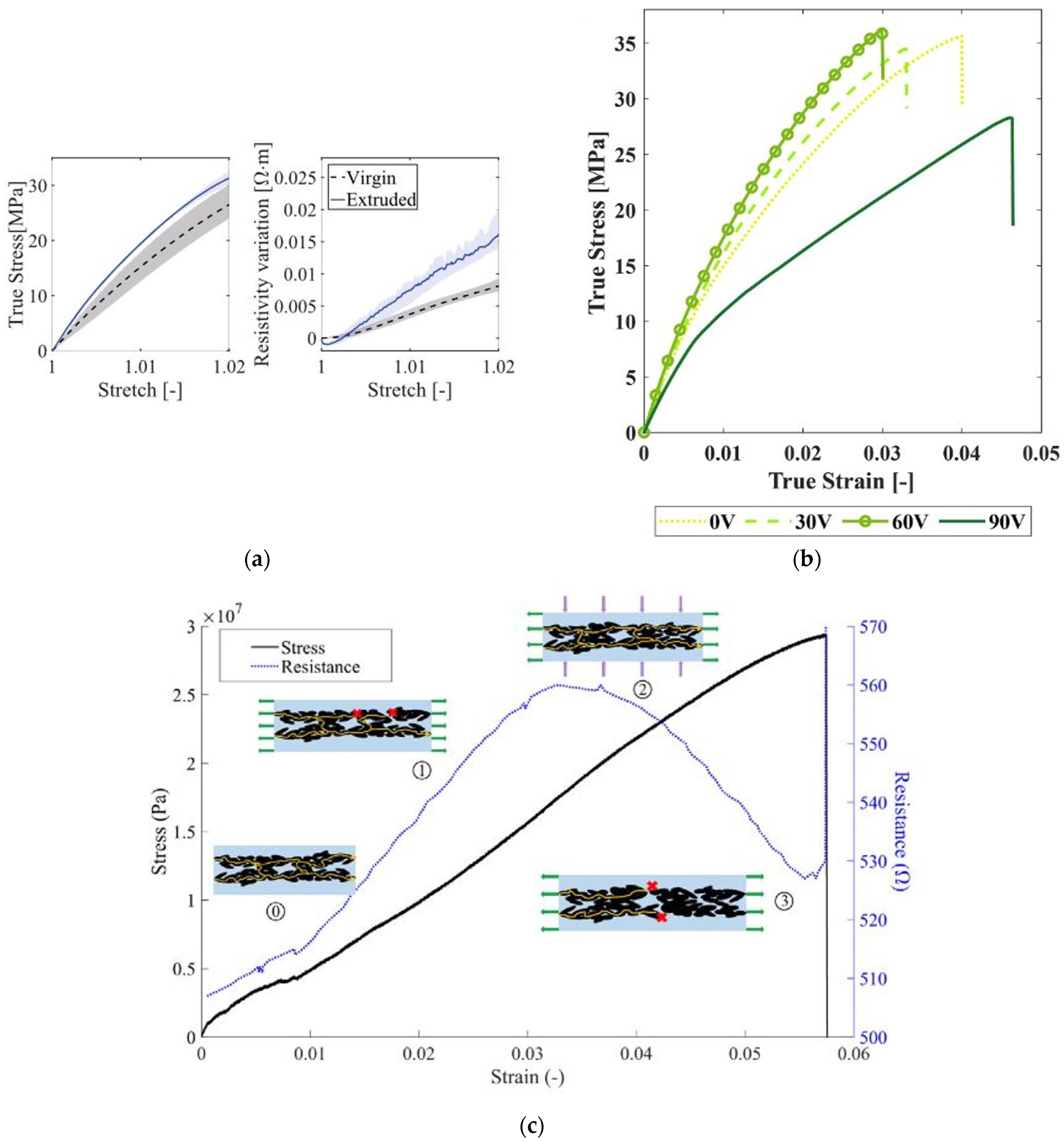 - Crespo-Miguel, J.; Lucarini, S.; Arias, A.; Garcia-Gonzalez, D. Thermo-electro-mechanical microstructural interdependences in conductive thermoplastics. Npj Comput. Mater. 2023, 9, 134. [Google Scholar] [CrossRef]