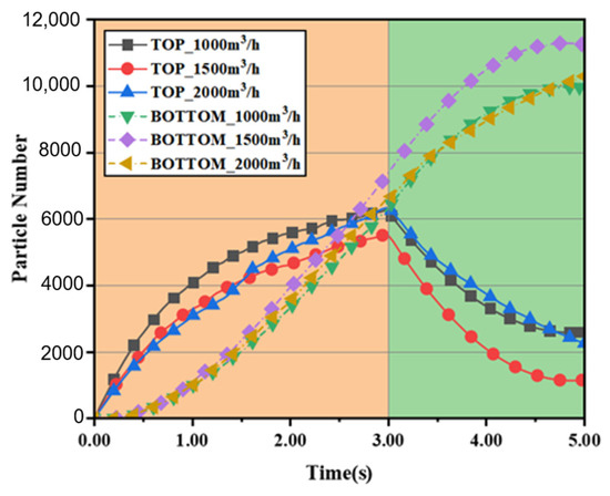 The experimentally measured volumetric airflow rate (L) within the grinding system was determined to range from 0 to 2095 m3/h. To systematically evaluate airflow-dependent performance, four discrete airflow levels were defined: 0 m3/h, 1000 m3/h, 1500 m3/h, and 2000 m3/h. Based on the standard air density (ρ = 1.293 kg/m3 at 25 °C and 101.325 kPa), the mass flow rate levels for the intake airflow were systematically assigned as 0 kg/s, 0.36 kg/s, 0.54 kg/s, and 0.72 kg/s.