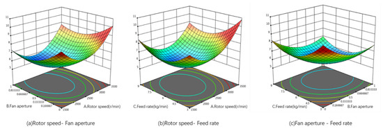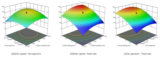 According to the production experience, the hammer blade end line speed is generally about 60–100 m/s; from the rotor shaft, the hammer blade size can be calculated to obtain the rotor speed. Considering the production experience and the working performance of the pulverizer, the rotor speed levels were set to three levels of 1700 r/min, 2500 r/min, and 3300 r/min.