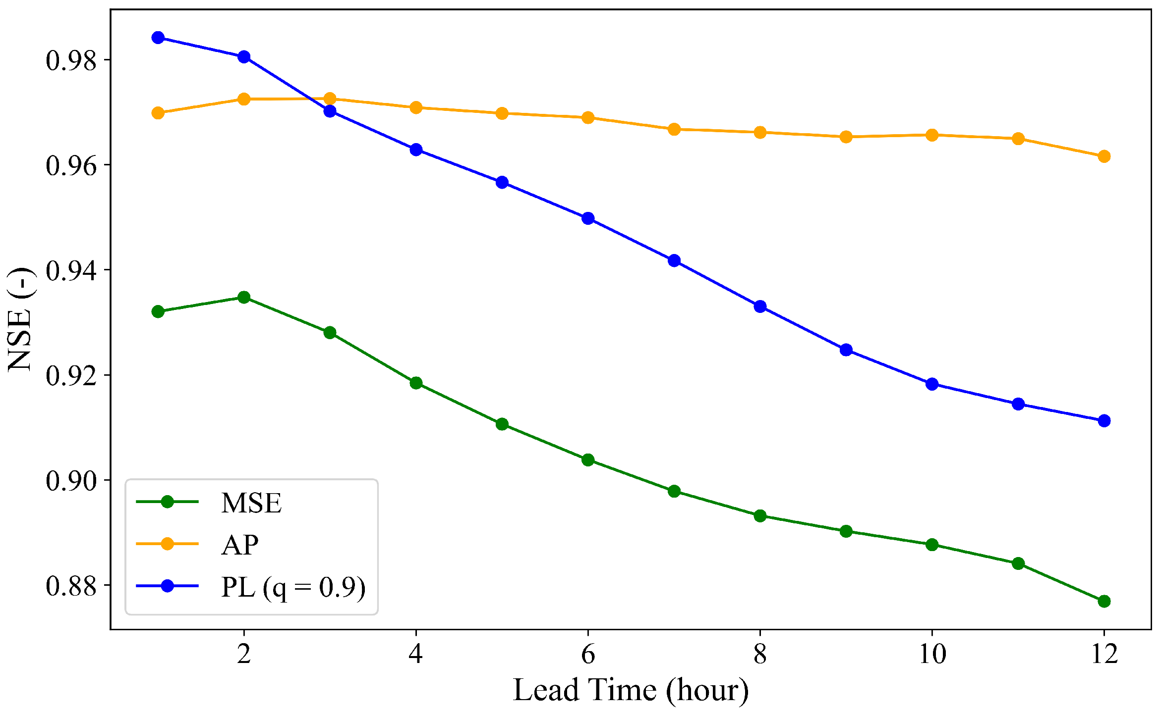 | Loss Function | Lead Time (Hour) | NSE | NSE () |