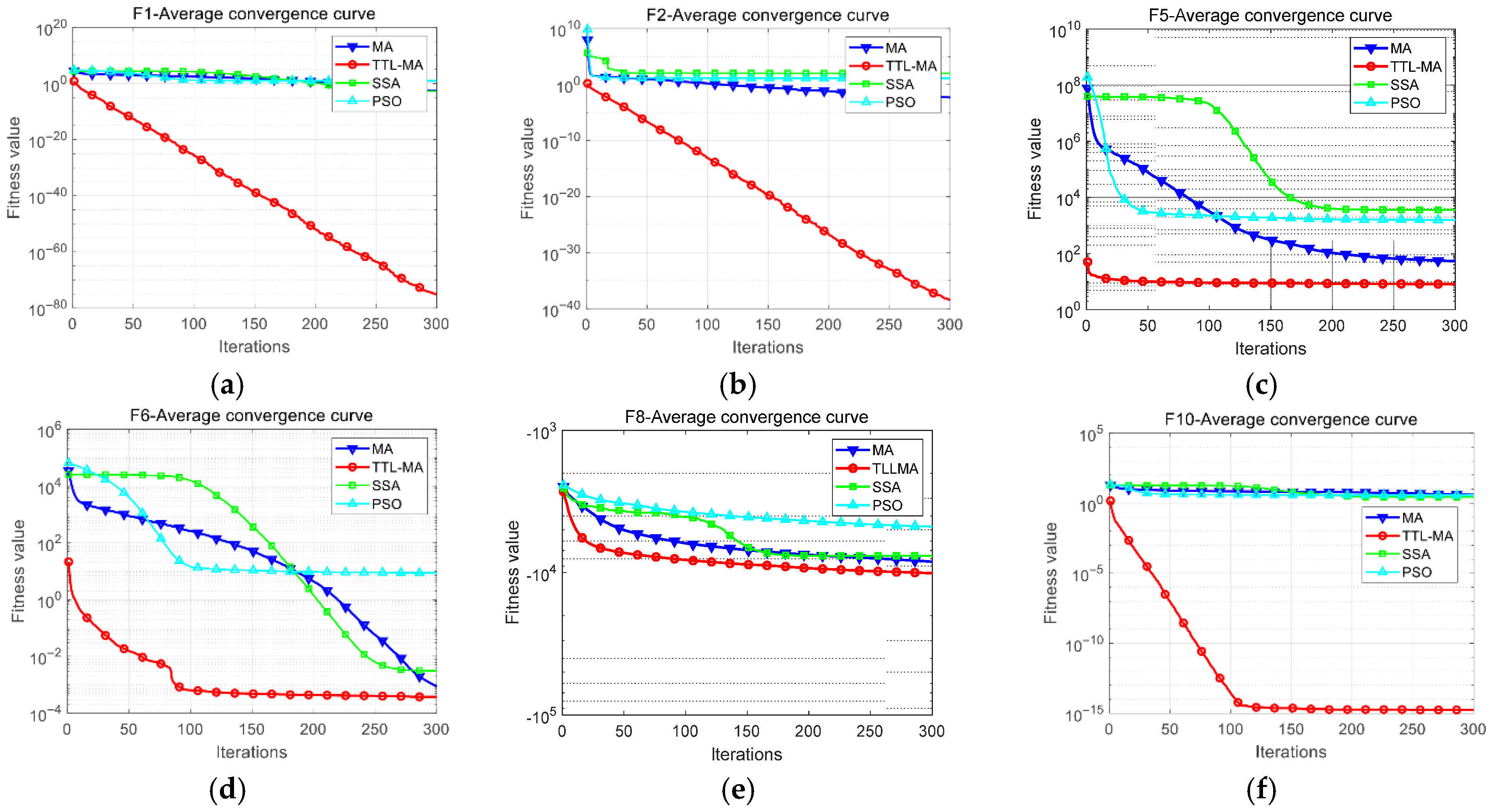 | F2 | Best | 3.20 × 10−5 | 4.81 × 10−45 | 3.11 × 100 | 1.01 × 101 | TTL-MA |
