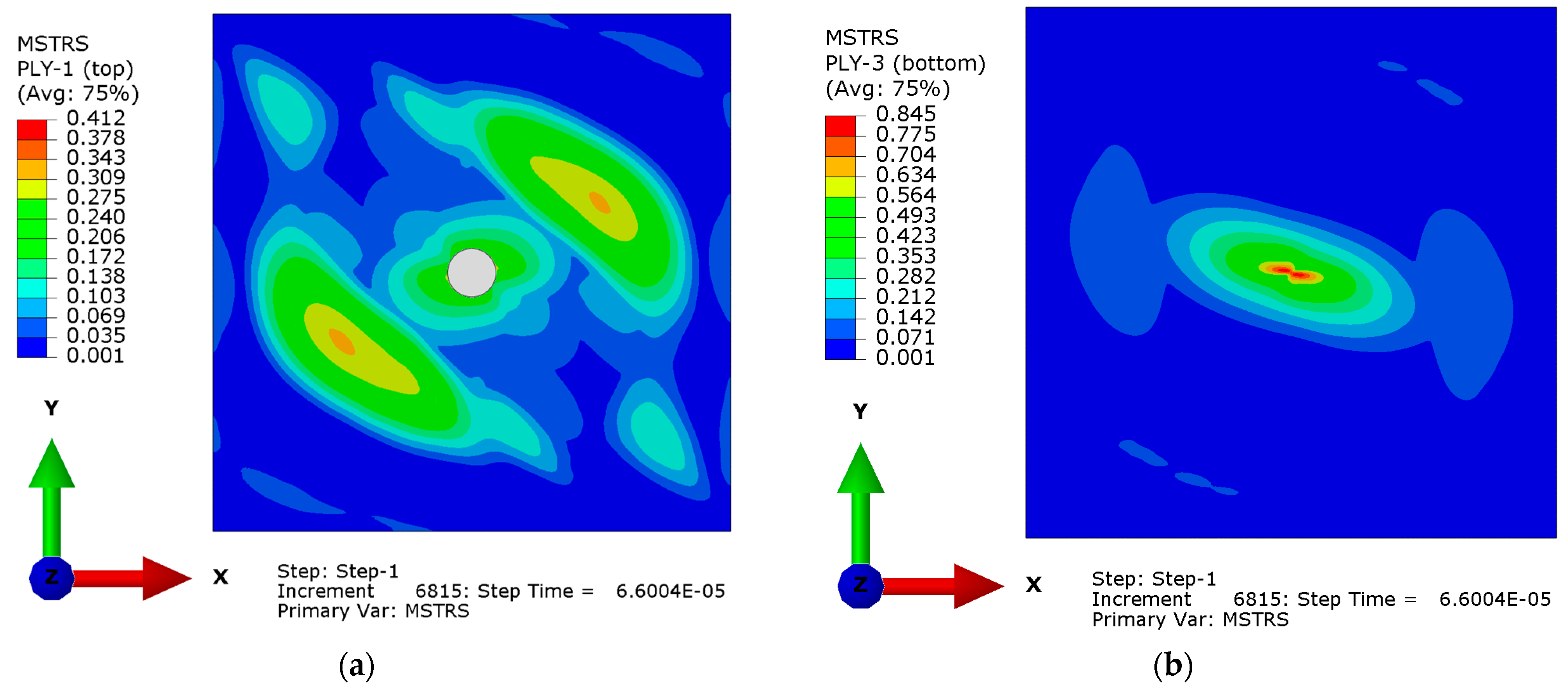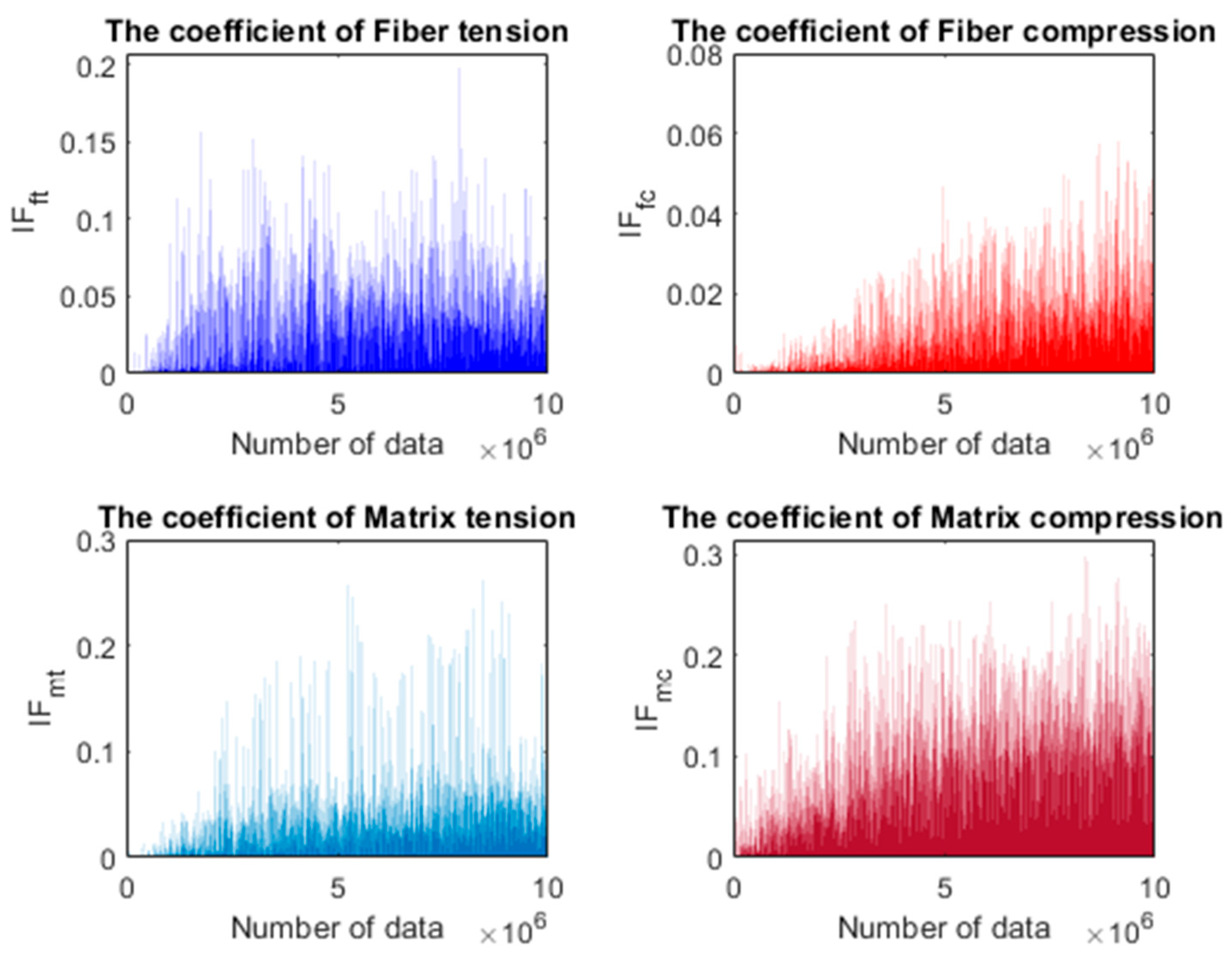 It should be noted that, according to HFC, Equations (12)–(15) define the square of failure indices. When any of these failure indices surpass 1, it indicates that the corresponding damage mode has initiated in the composite ply.