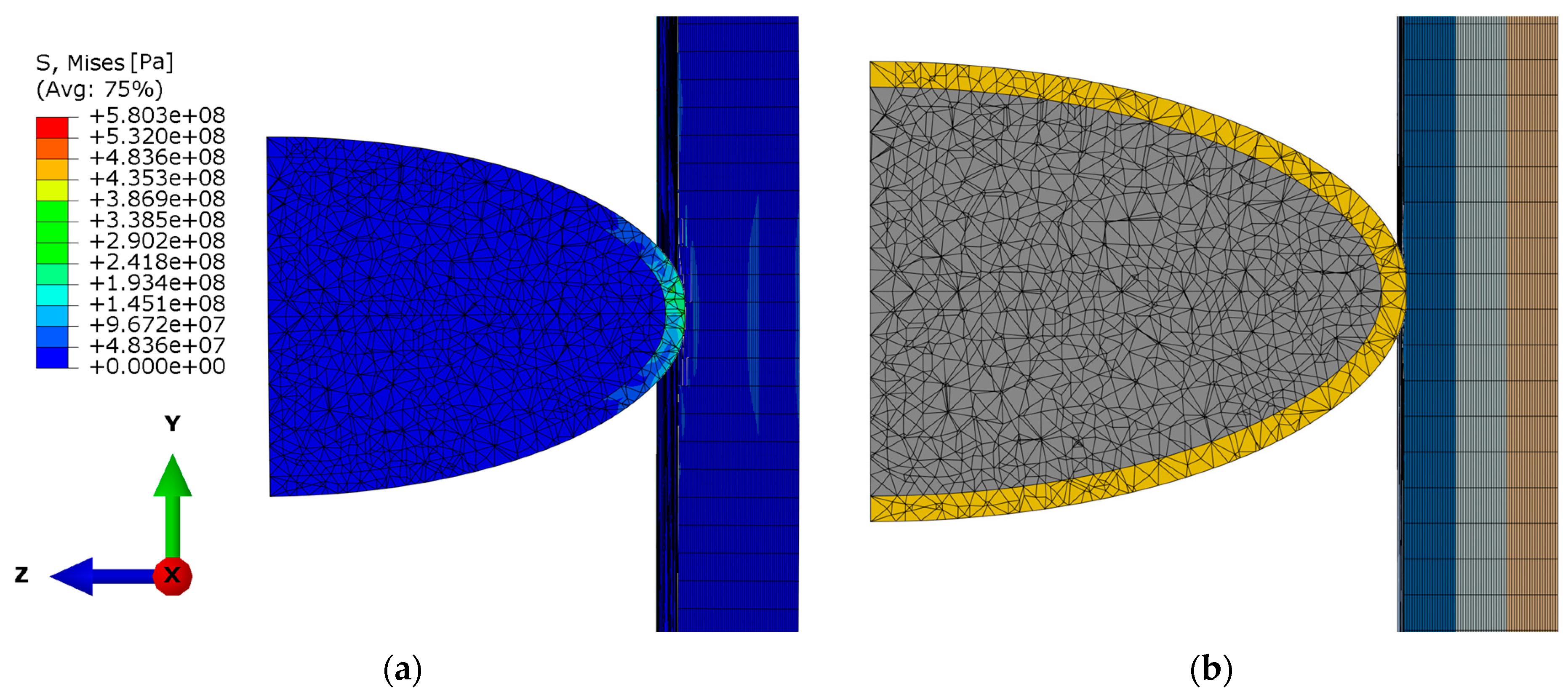 36] used explicit analysis in ABAQUS to perform nonlinear, large deformation impact analysis of poli-etar-etar-keton (PEEK)–ceramic–gelatin composites and, thus, study the behind-armor ballistic trauma. Guo et al. [