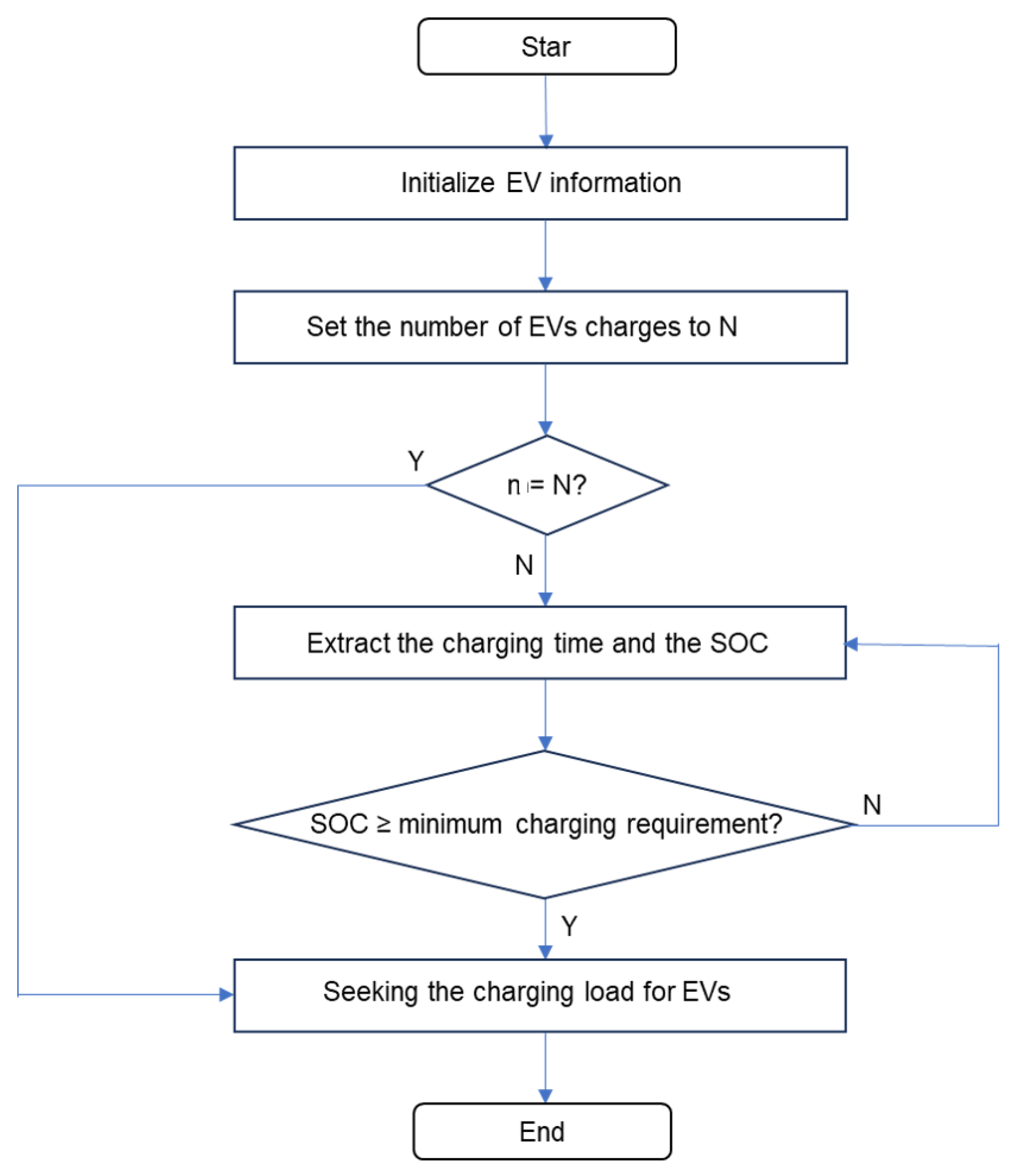 The SOC of an EV is assumed to decrease linearly with its driving distance. Hence, the initial SOC of the EV can be estimated based on the vehicle’s daily travel mileage,