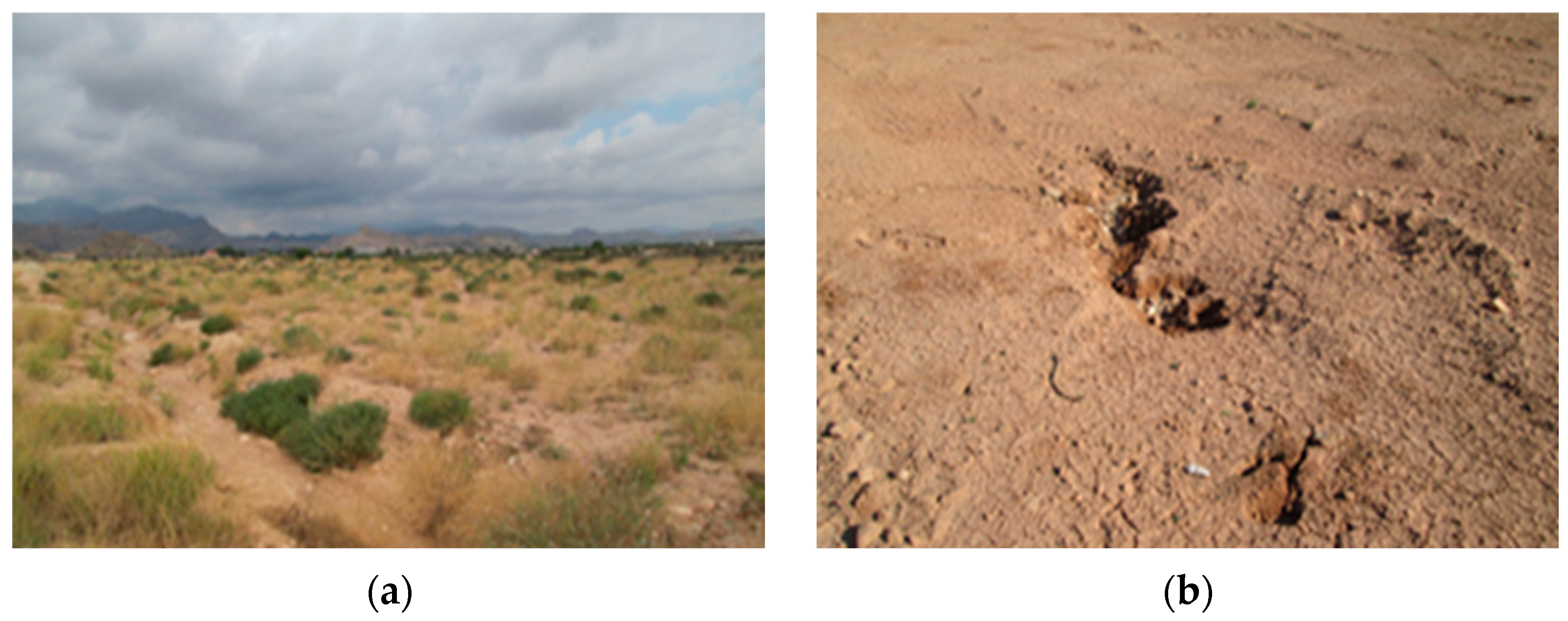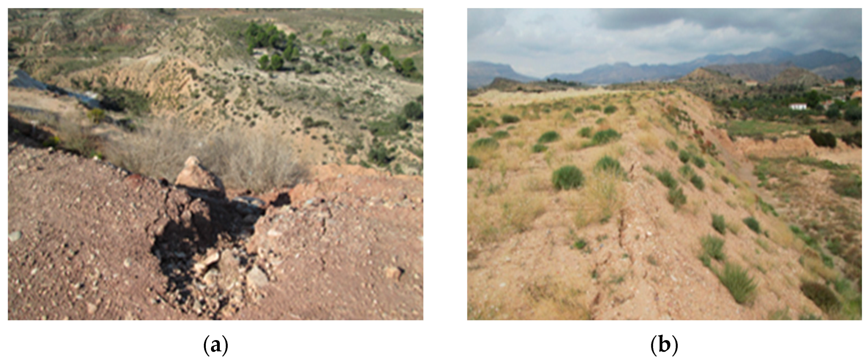 - Luna Ramos, L.; Solé Benet, A.; Lázaro Suau, R.; Arzadun Larrucea, A.; Hens Del Campo, L.; Urdiales Matilla, A. Field-Testing and Characterization of Technosols Made from Industrial and Agricultural Residues for Restoring Degraded Slopes in Semiarid SE Spain. J. Soils Sediments 2021, 21, 1989–1997. [Google Scholar] [CrossRef]