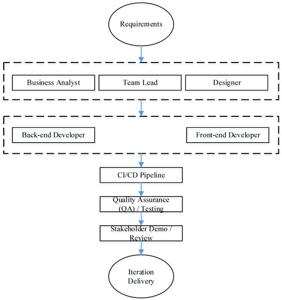 Analysis of modern research and practices in the field of project management has shown that the success of software development largely depends not only on the choice of methodology, but also on the organization of team interaction. In the works [19,20], it is emphasized that the effectiveness of Agile approaches is due to a well-thought-out team structure, a balanced composition, and a clear distribution of roles. At the same time, the integration of AI tools, automation, in particular CI/CD pipelines, as well as DevOps practices, allows you to significantly reduce risks and accelerate the delivery of increments.