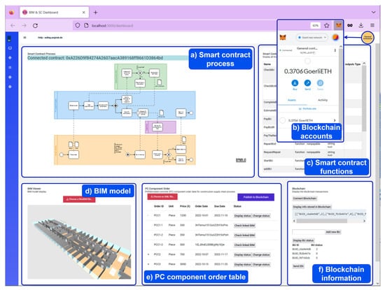 The Demo system, as shown in Figure 8, combines smart contract execution with BIM viewer and component tracking, enabling traceable and semi-automated process control: