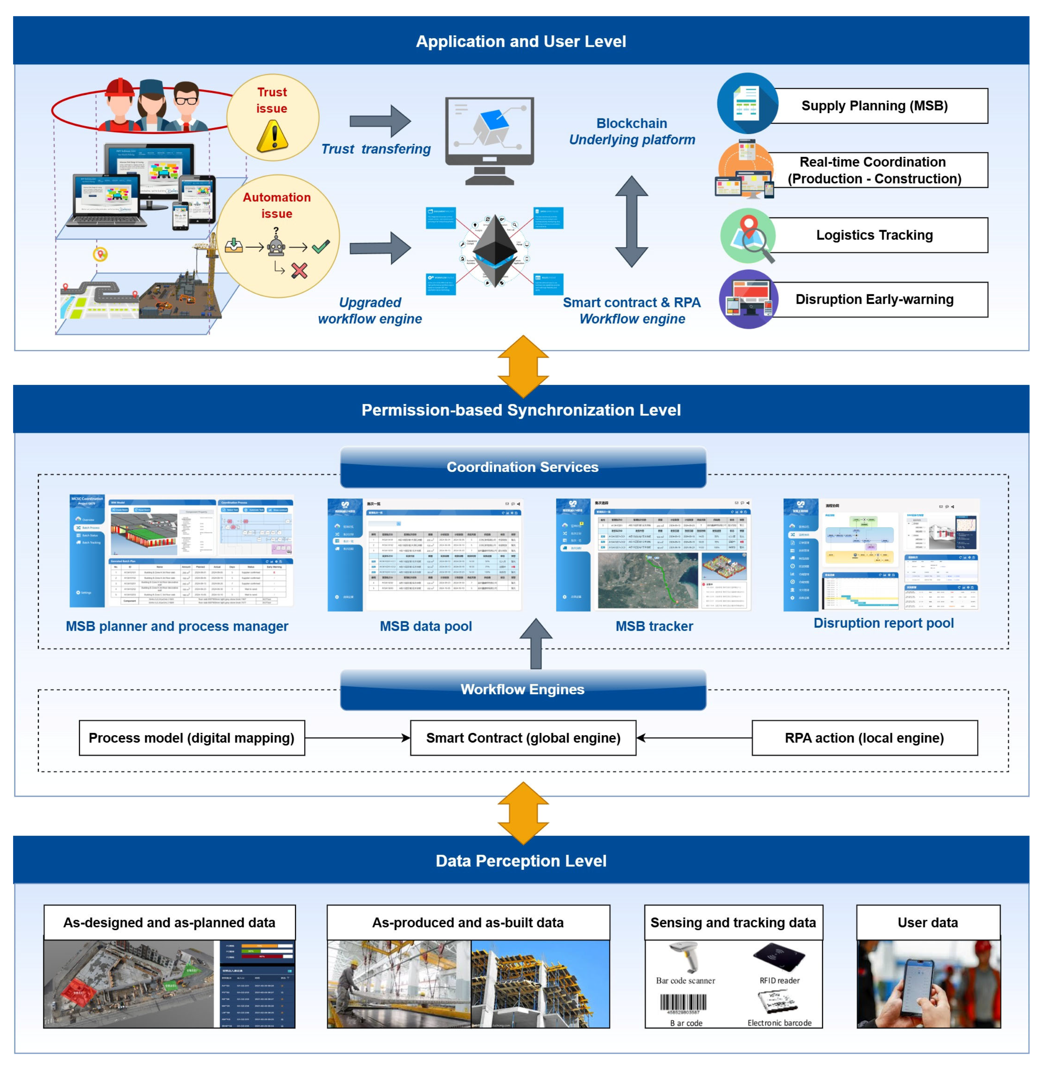 - Jiang, Y.; Liu, X.; Kang, K.; Wang, Z.; Zhong, R.Y.; Huang, G.Q. Blockchain-Enabled Cyber-Physical Smart Modular Integrated Construction. Comput. Ind. 2021, 133, 103553. [Google Scholar] [CrossRef]