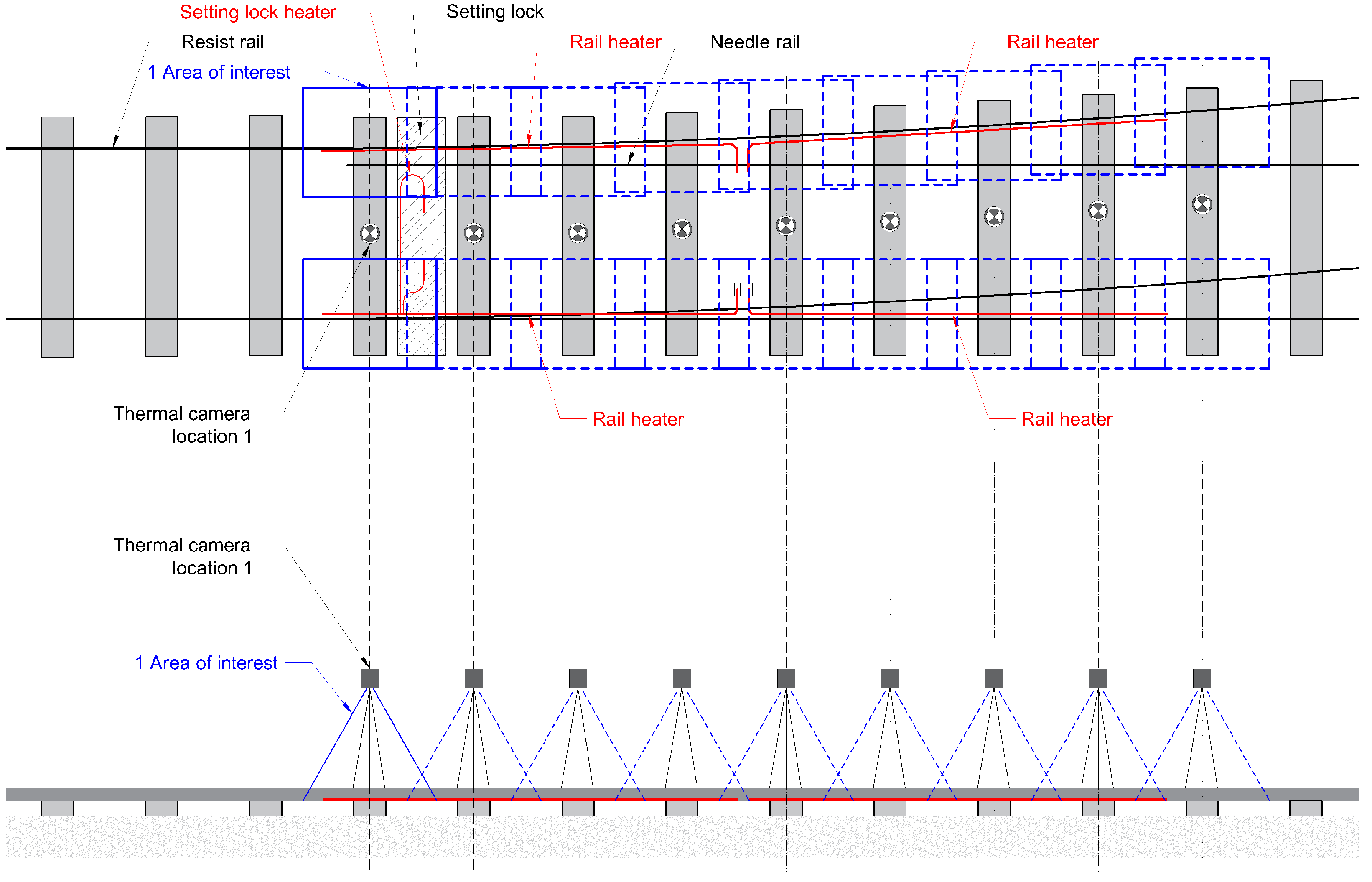 - Critical heating zones: Switch blade contact areas, closure panels, and frog regions.