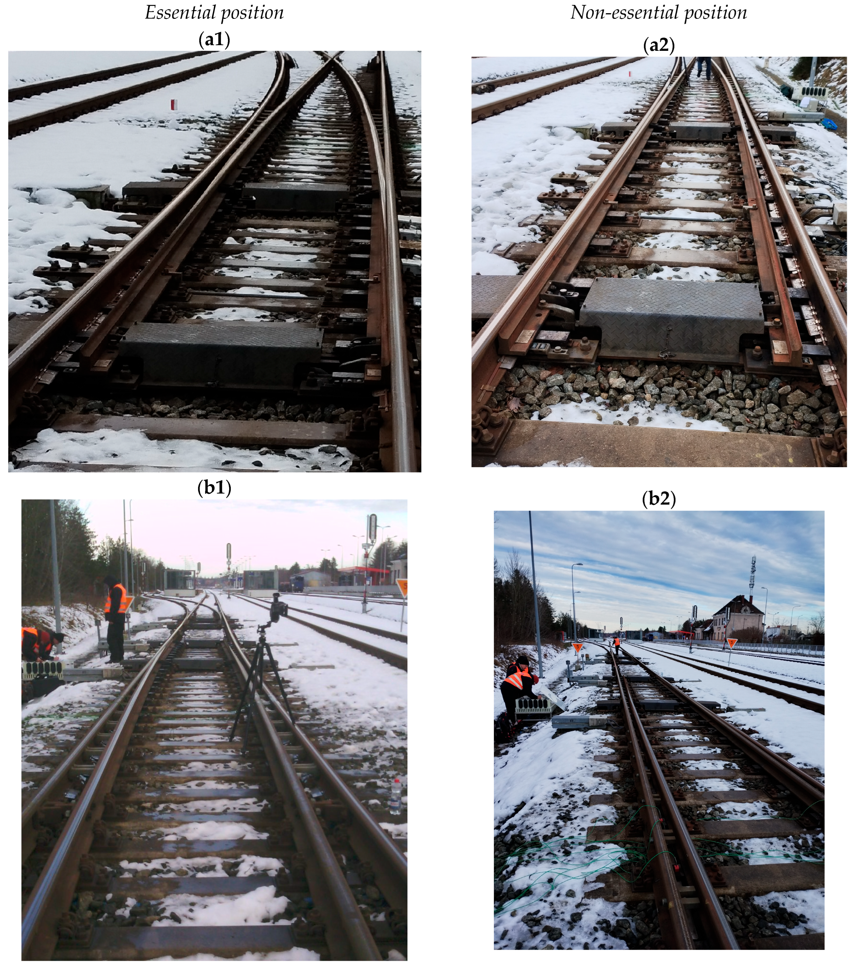 | 2. | Rz 60E1-1:12–500—No. 12 Reference turnout with the standard EOR system (Gdańsk Osowa) | 12,700 | 31.4 | 328 | 2.22 | 207.7 |