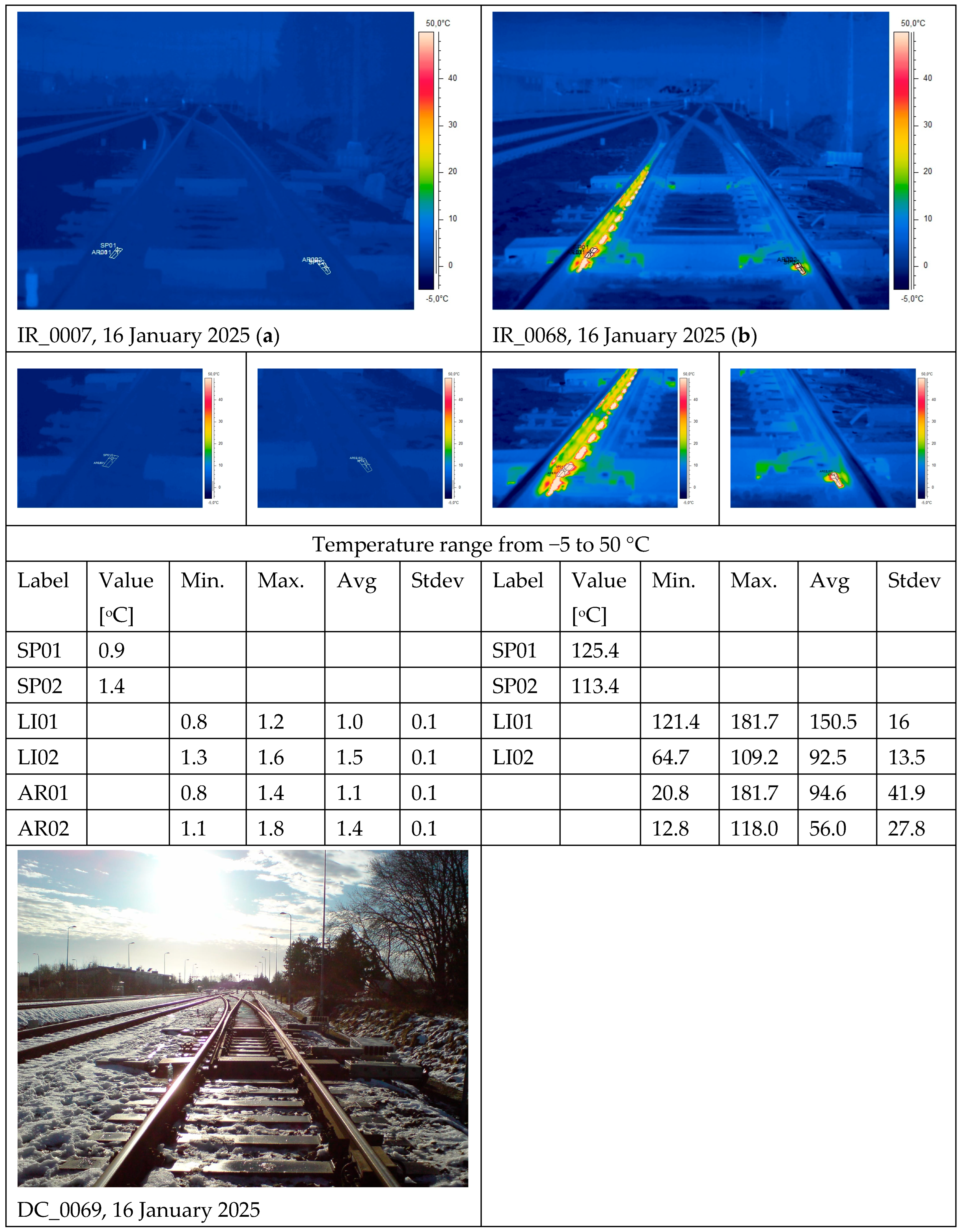 - Total images per measurement session: 15–20 thermal images per turnout, plus corresponding visible light photographs.