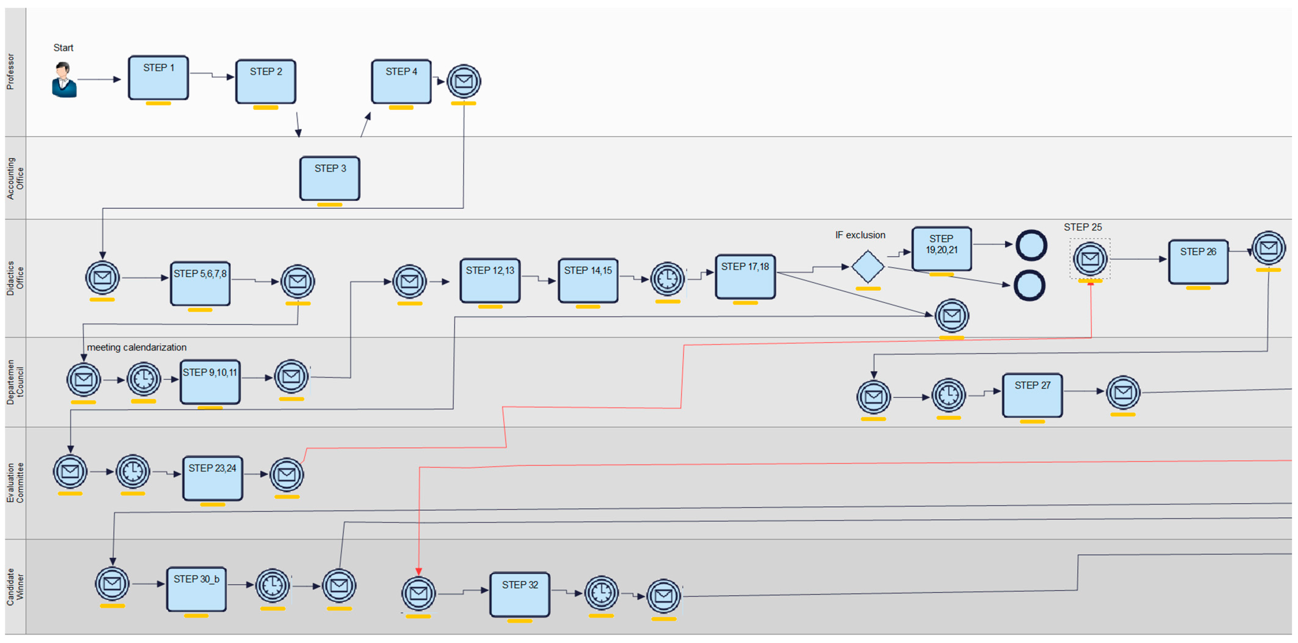 | Professor/Faculty | Accounting Office | Didactics Office | Director | Department Council | Evaluation Committee | Candidate/ Winner |