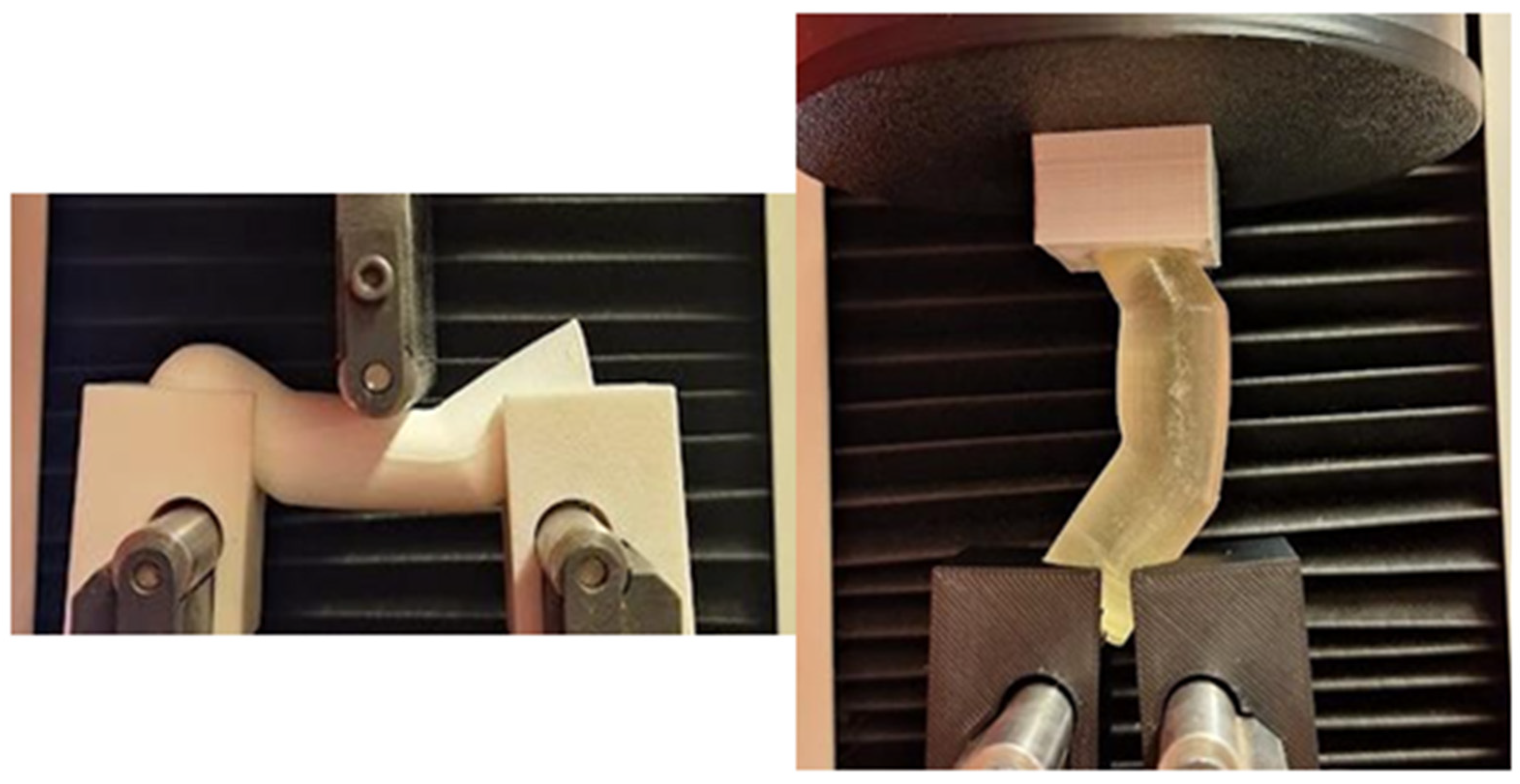 In masked stereolithography (MSLA), flexible or elastic resins can also be used, though they typically exhibit lower elongation at break and limited tear resistance compared to silicones. While MSLA allows for fine surface detail and complex geometries, its suitability for repeated mechanical loading is still under investigation [