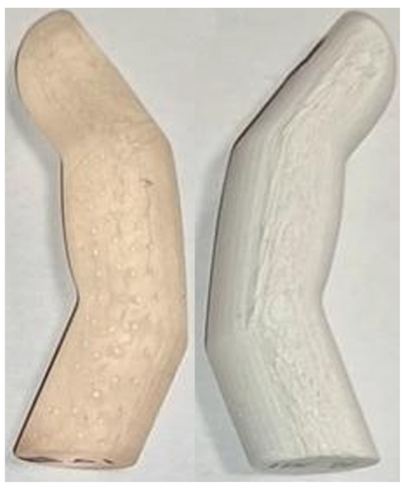 The esthetic assessment was subjective and based on a binary classification system: each sample was evaluated as either suitable for use or unsuitable for use. In this study, the assessment served as a pass/fail conformity check to flag gross manufacturing defects rather than a measure of esthetic quality; non-conformities were defined a priori (e.g., pronounced layer separation, voids/ruptures, severe warping or distortion, incomplete curing/bonding, or surface artifacts likely to impair function or safety). Evaluations were performed under consistent ambient lighting at normal viewing distance, with samples inspected in the as-printed state after routine cleaning and without cosmetic rework. The evaluation was performed by a group of four experts: two specialists in additive manufacturing, one biomedical engineer, and one prosthetist. The authors assume that the production process for individualized prosthetic devices should strive for maximum automation. Manual interventions—such as esthetic refinements performed by an artisan or craftsman—should be minimized or eliminated from the manufacturing workflow in order to reduce costs and improve accessibility to orthopedic equipment.