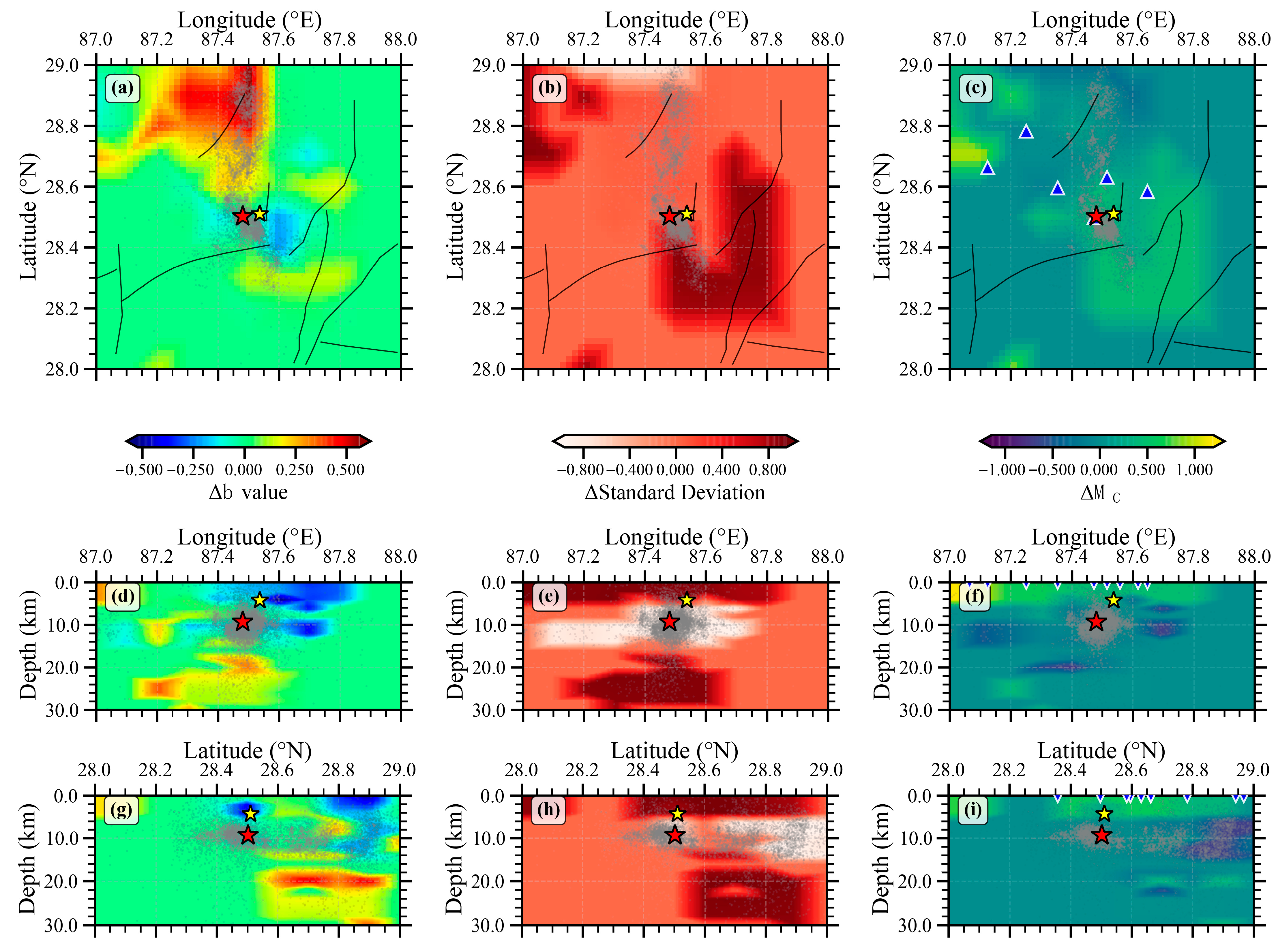 4.1. Spatiotemporal Evolution of b Values and Earthquake Occurrence