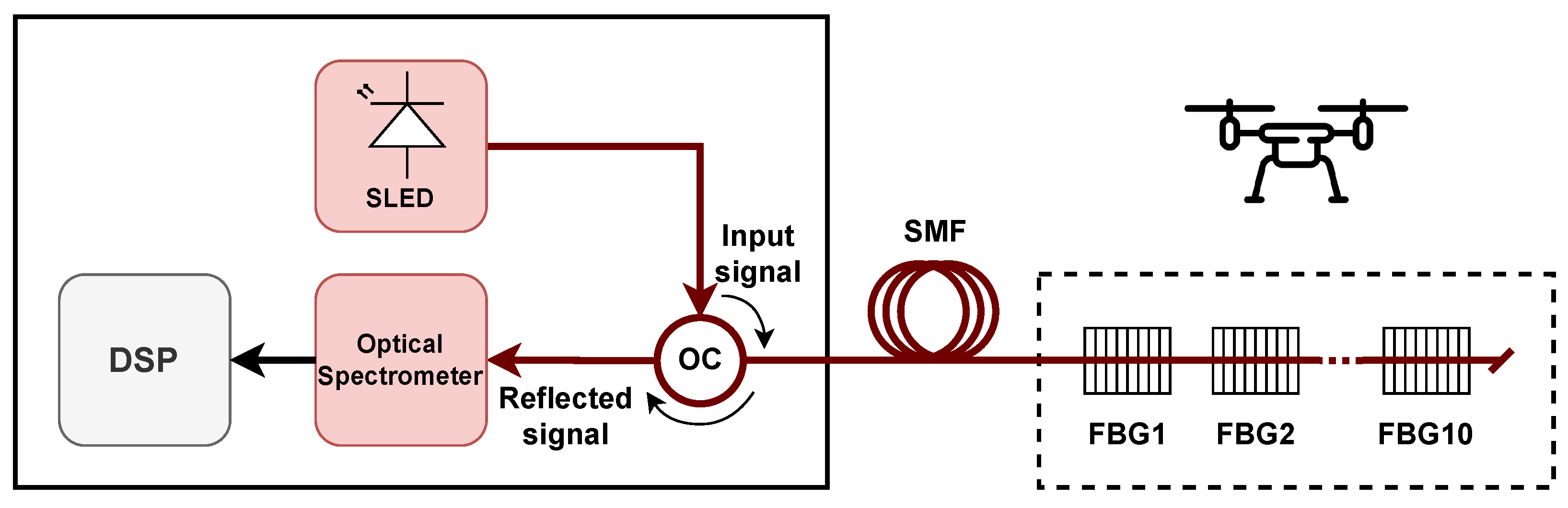 - Alhussein, A.N.D.; Qaid, M.R.T.M.; Agliullin, T.; Valeev, B.; Morozov, O.; Sakhabutdinov, A. Fiber Bragg Grating Sensors: Design, Applications, and Comparison with Other Sensing Technologies. Sensors 2025, 25, 2289. [Google Scholar] [CrossRef]