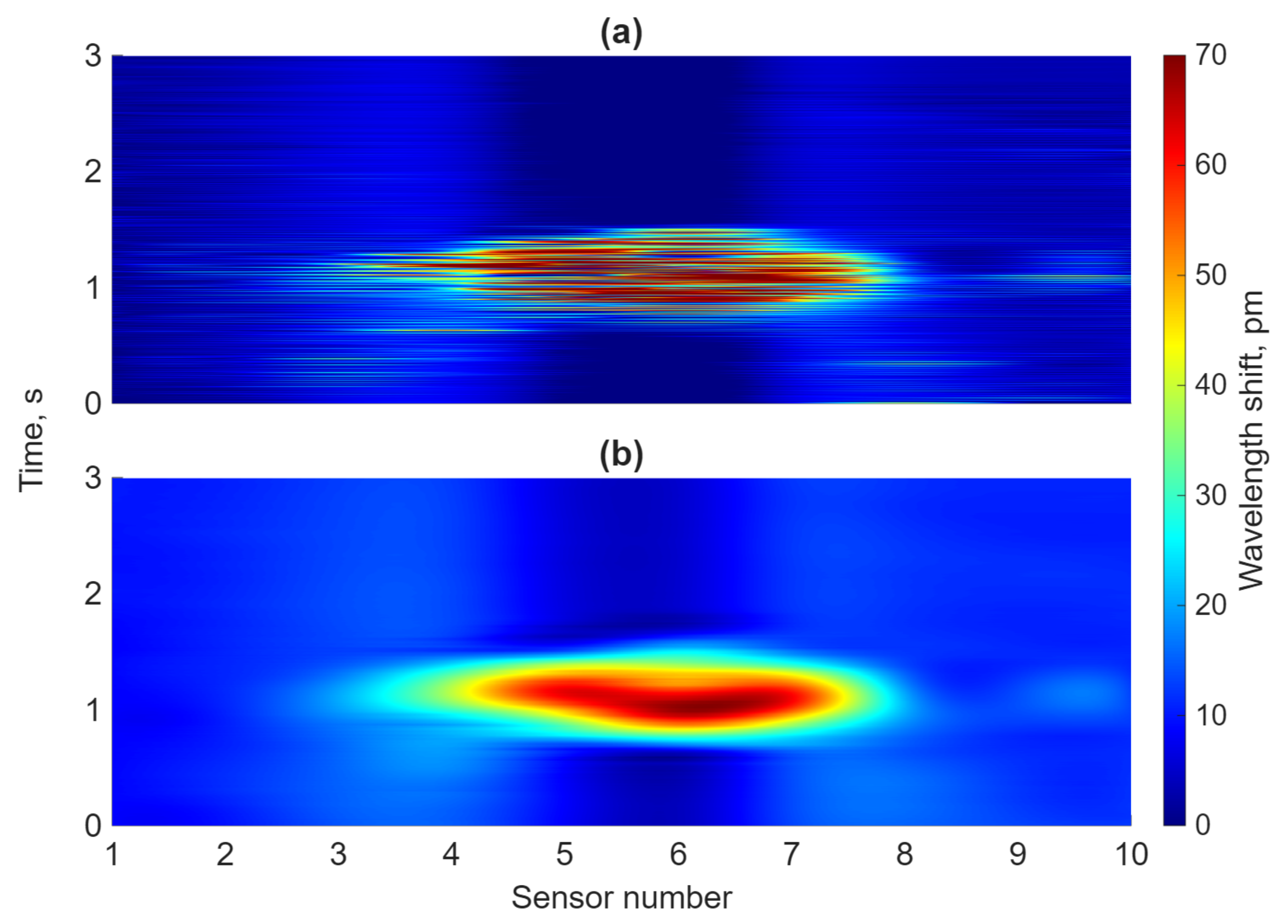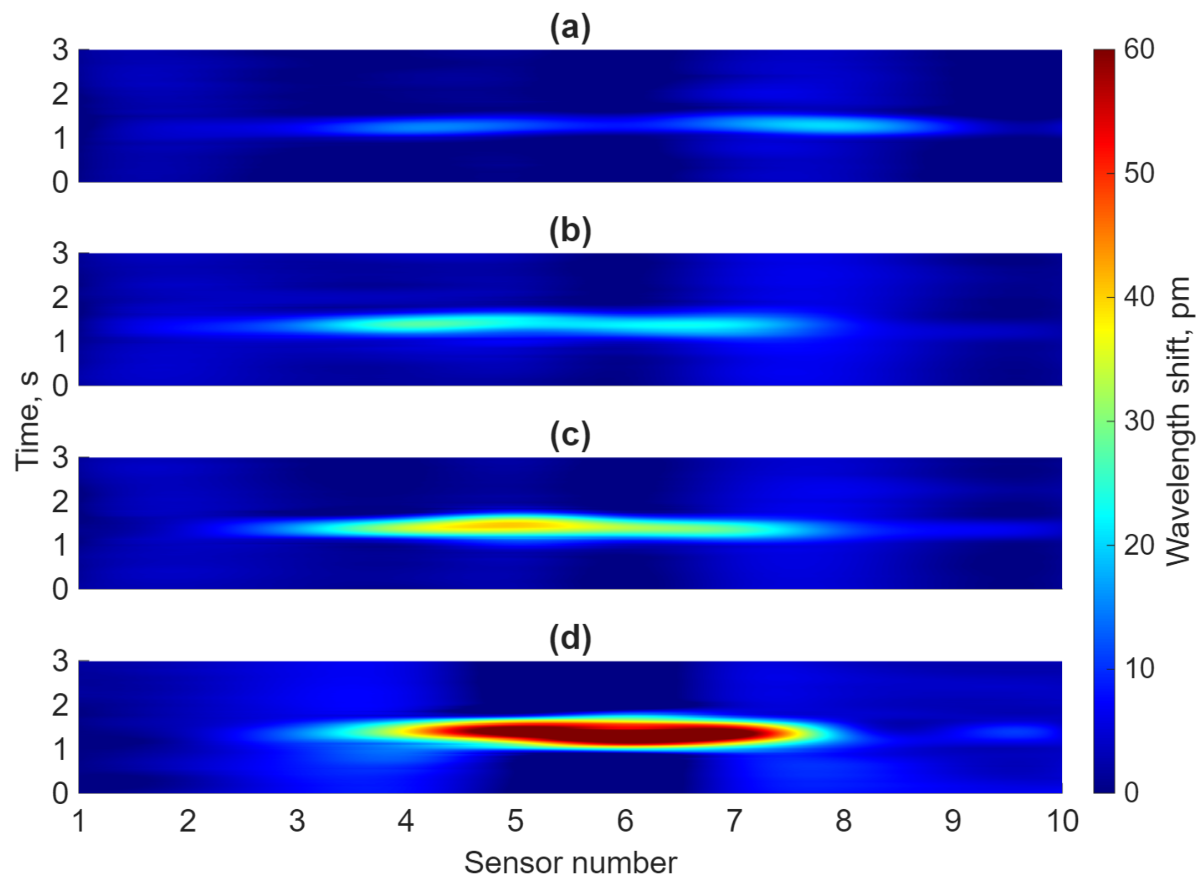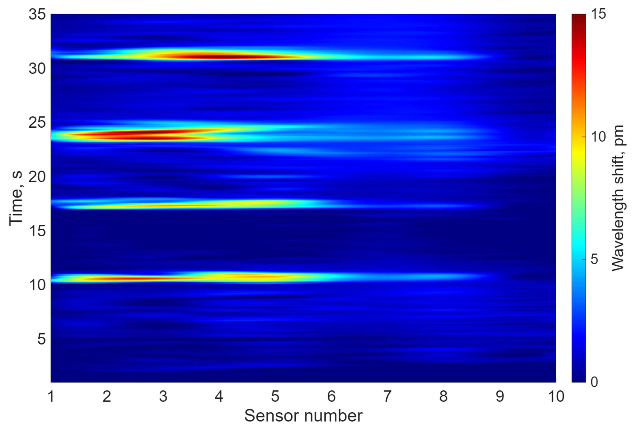 | This paper | 2025 | DJI Avata | 0.074 | Indoor setup with integrated FBG sensors in the optical fiber. | Detect and localize drones passing over the FBG sensor array. | Measured drone-induced downwash. Achieved localization of the drone passing over the FBG sensor array, as well as flight altitude detection with accuracy up to 90 percent. |