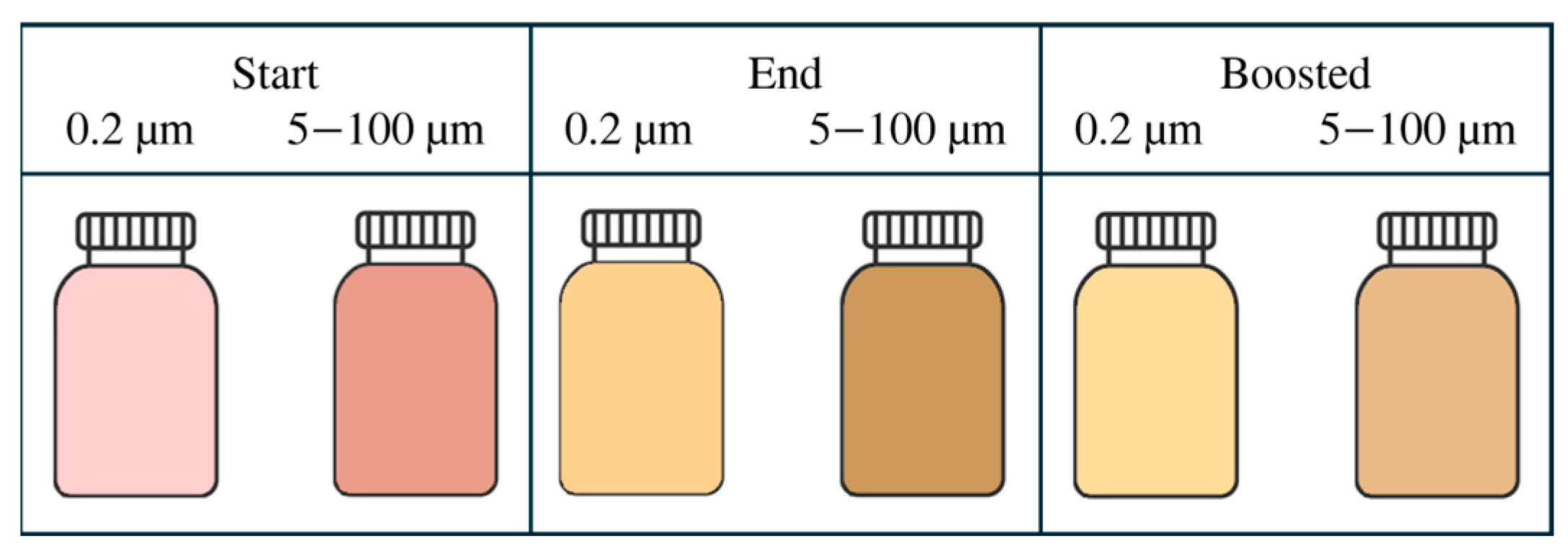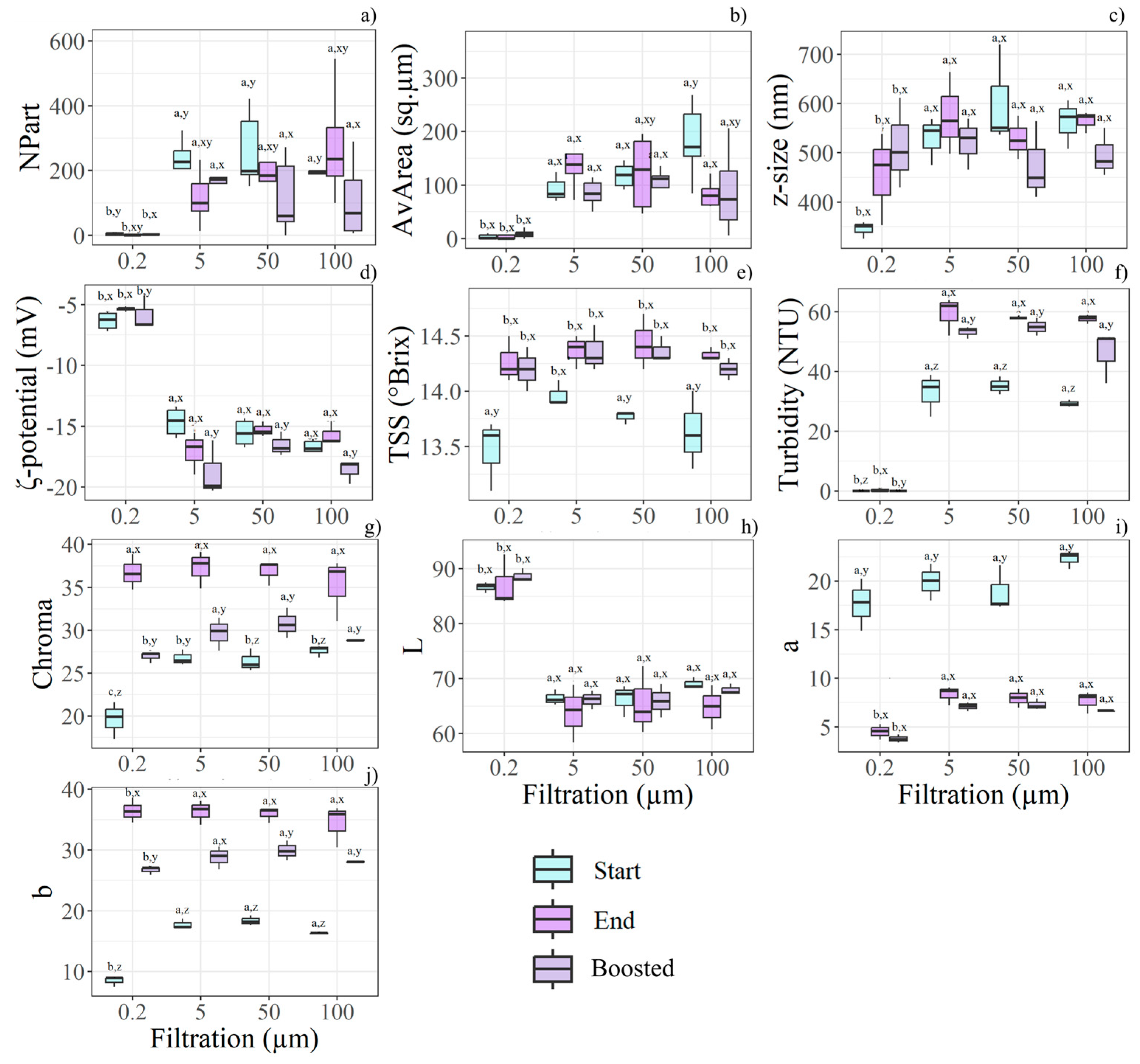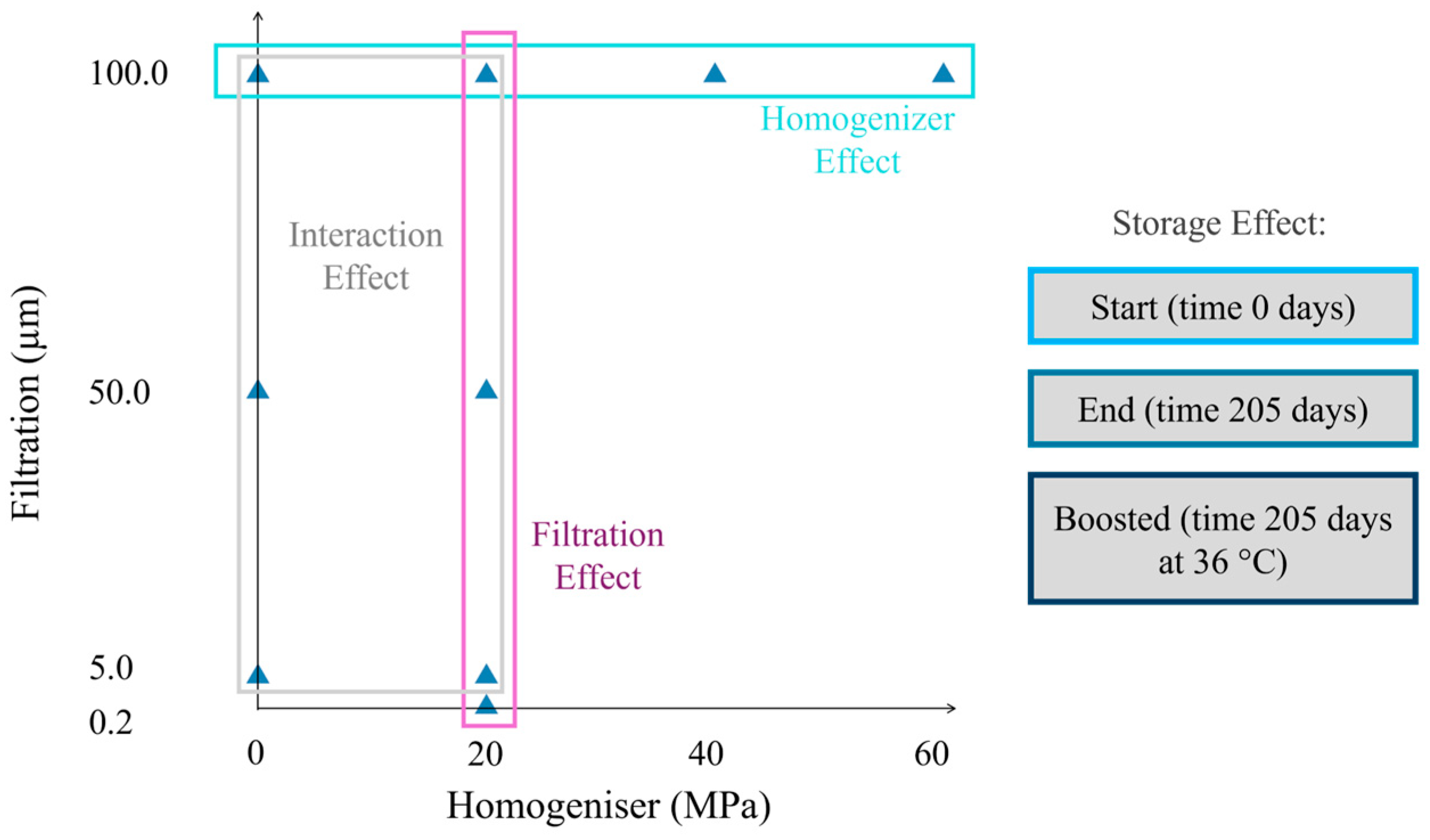 | Sample | Homogeniser (MPa) | Filter (µm) |
