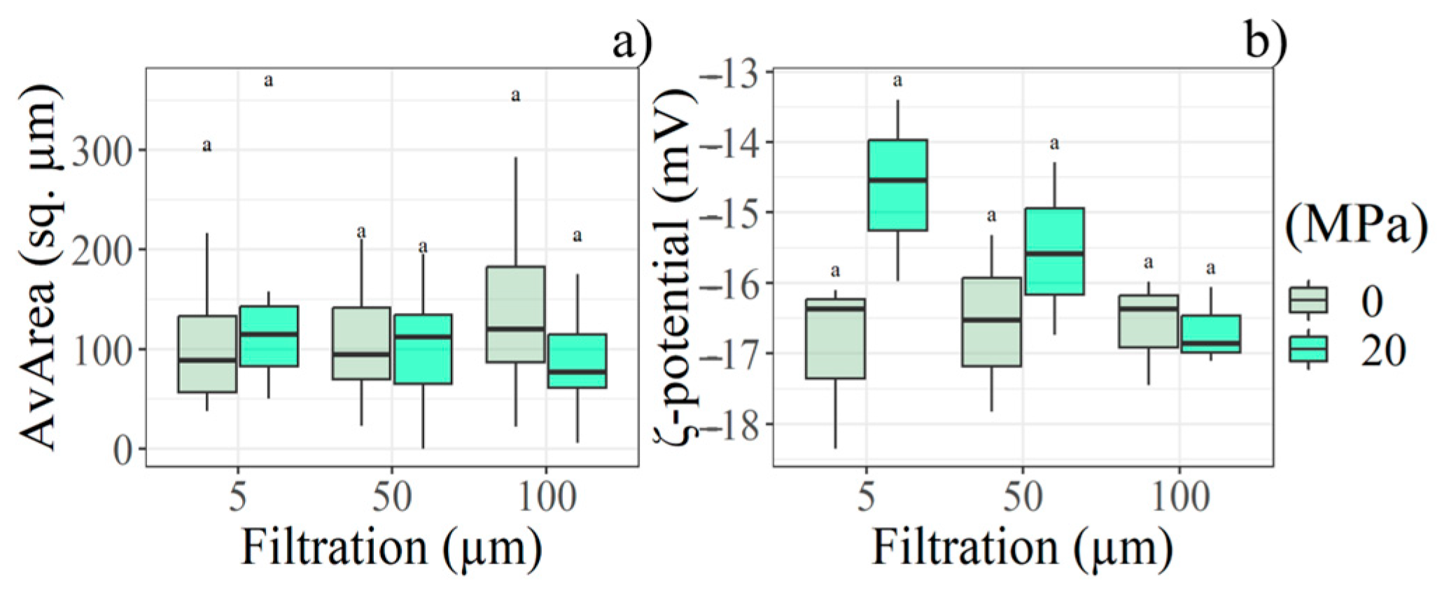- Moscovici Joubran, A.; Katz, I.H.; Okun, Z.; Davidovich-Pinhas, M.; Shpigelman, A. The Effect of Pressure Level and Cycling in High-Pressure Homogenization on Physicochemical, Structural and Functional Properties of Filtered and Non-Filtered Strawberry Nectar. Innov. Food Sci. Emerg. Technol. 2019, 57, 102203. [Google Scholar] [CrossRef]