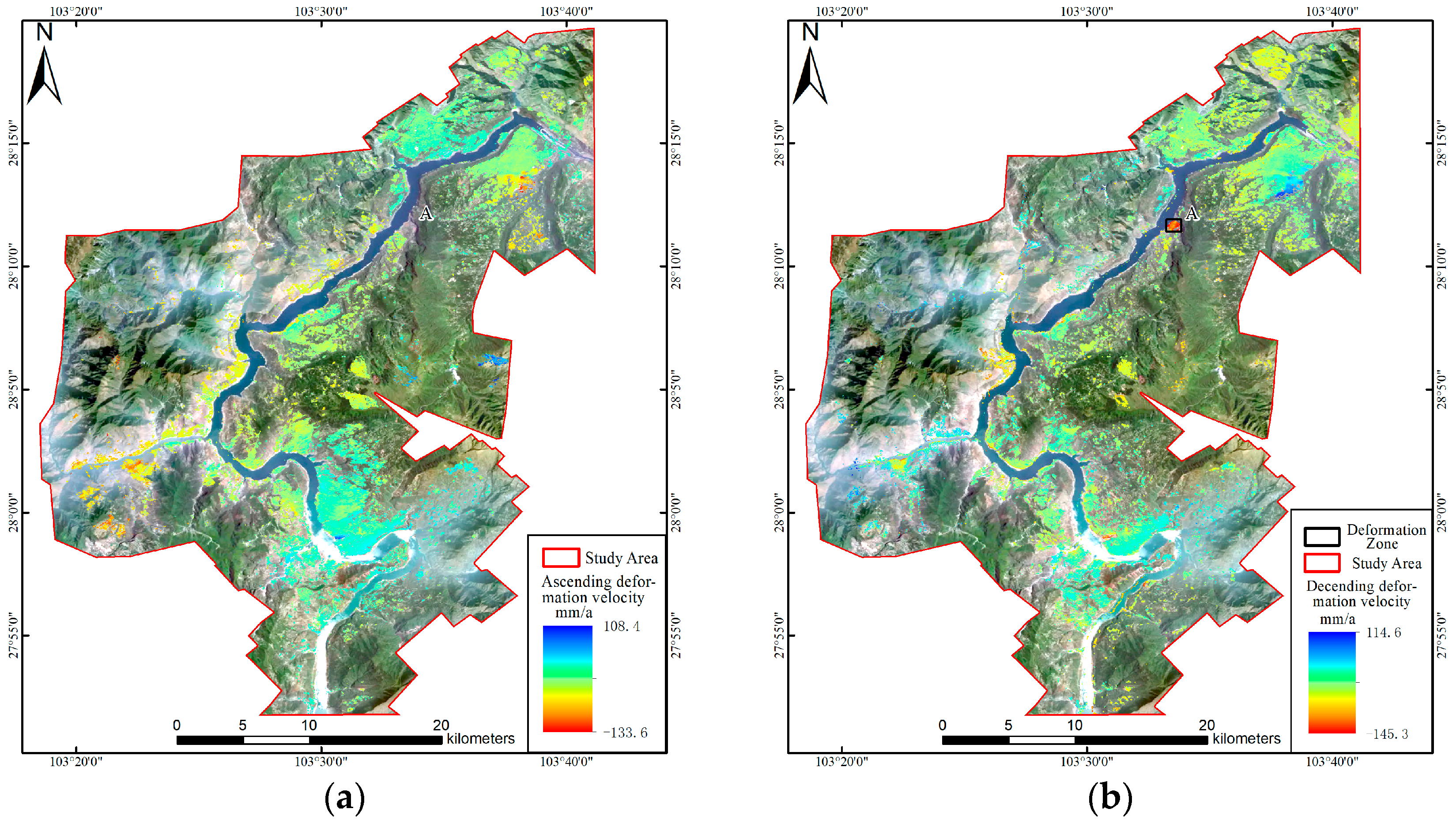 - Dong, Y.J.; Zuo, X.Q.; Li, Y.F.; Zhang, J.M.; Chen, K. Deformation monitoring and landslide identification in a reservoir area of a Southwest China power station based on DS-InSAR. Remote Sens. Inf. 2024, 39, 104–111. [Google Scholar]