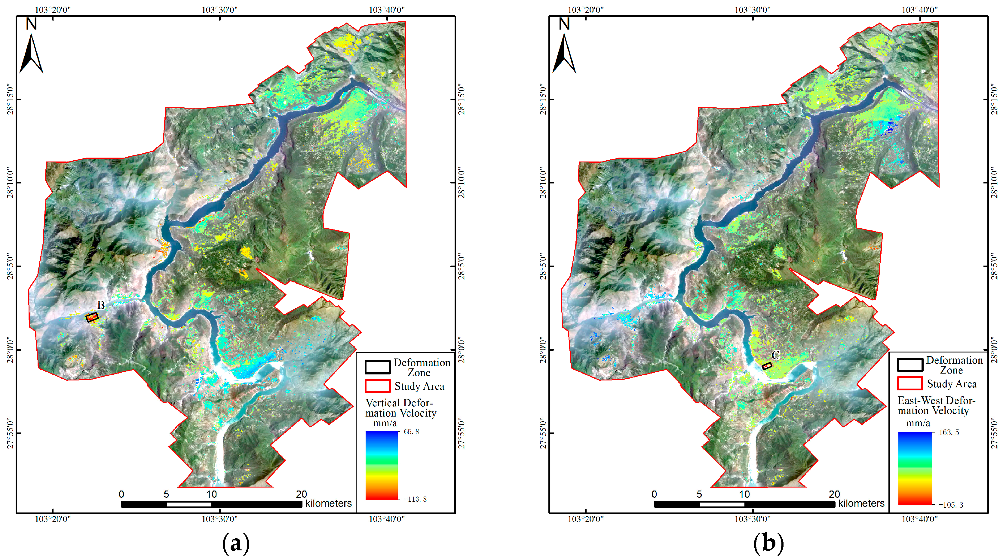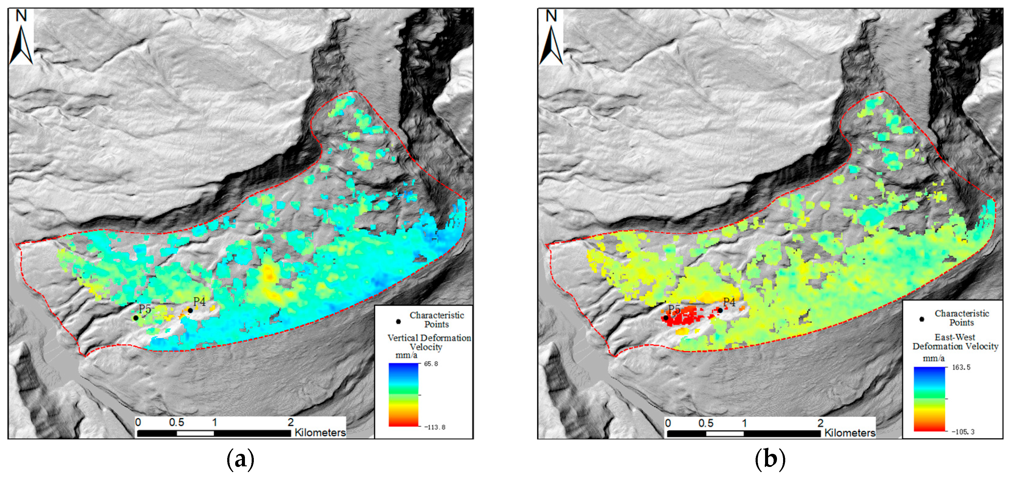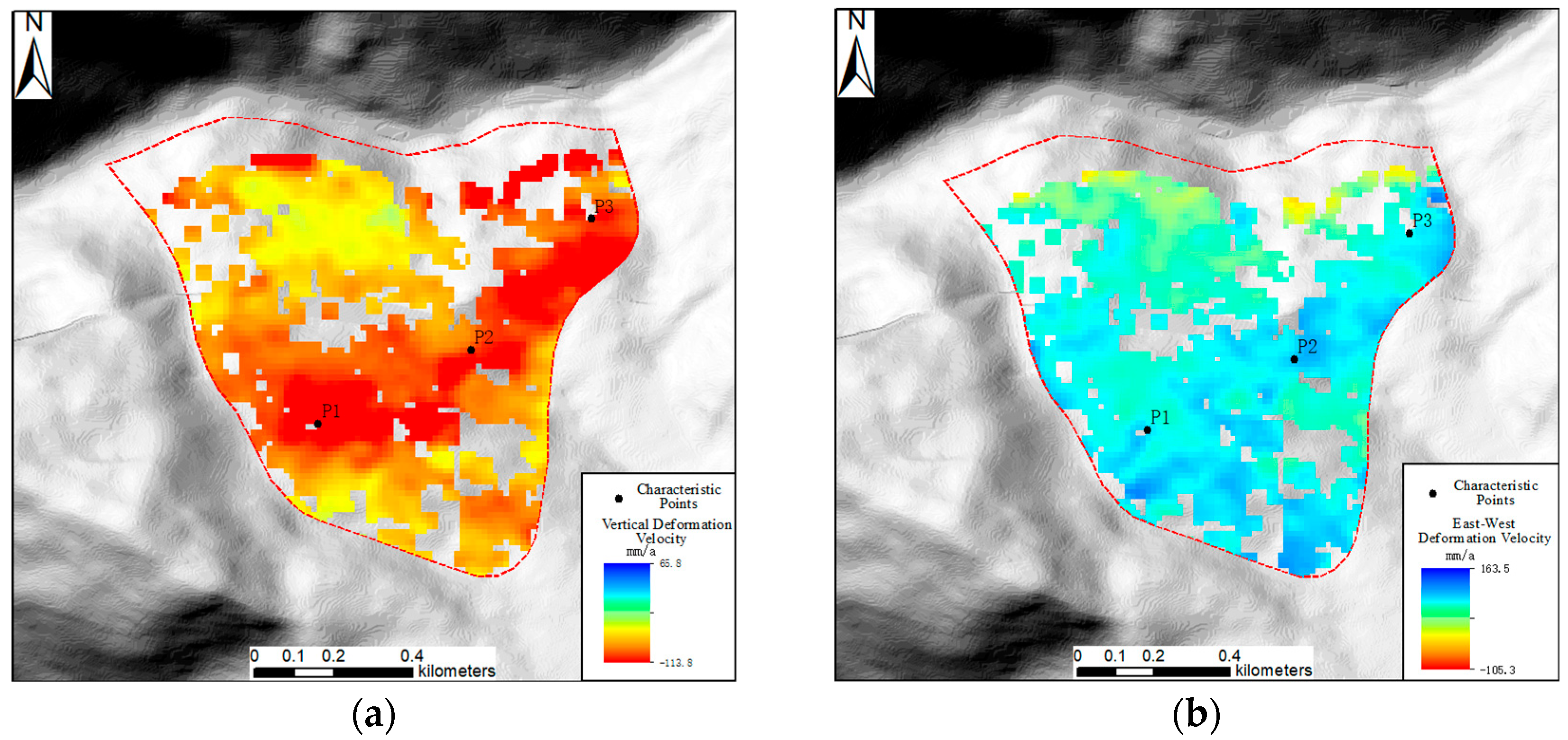3.3. Characterization of Typical Deformation Areas