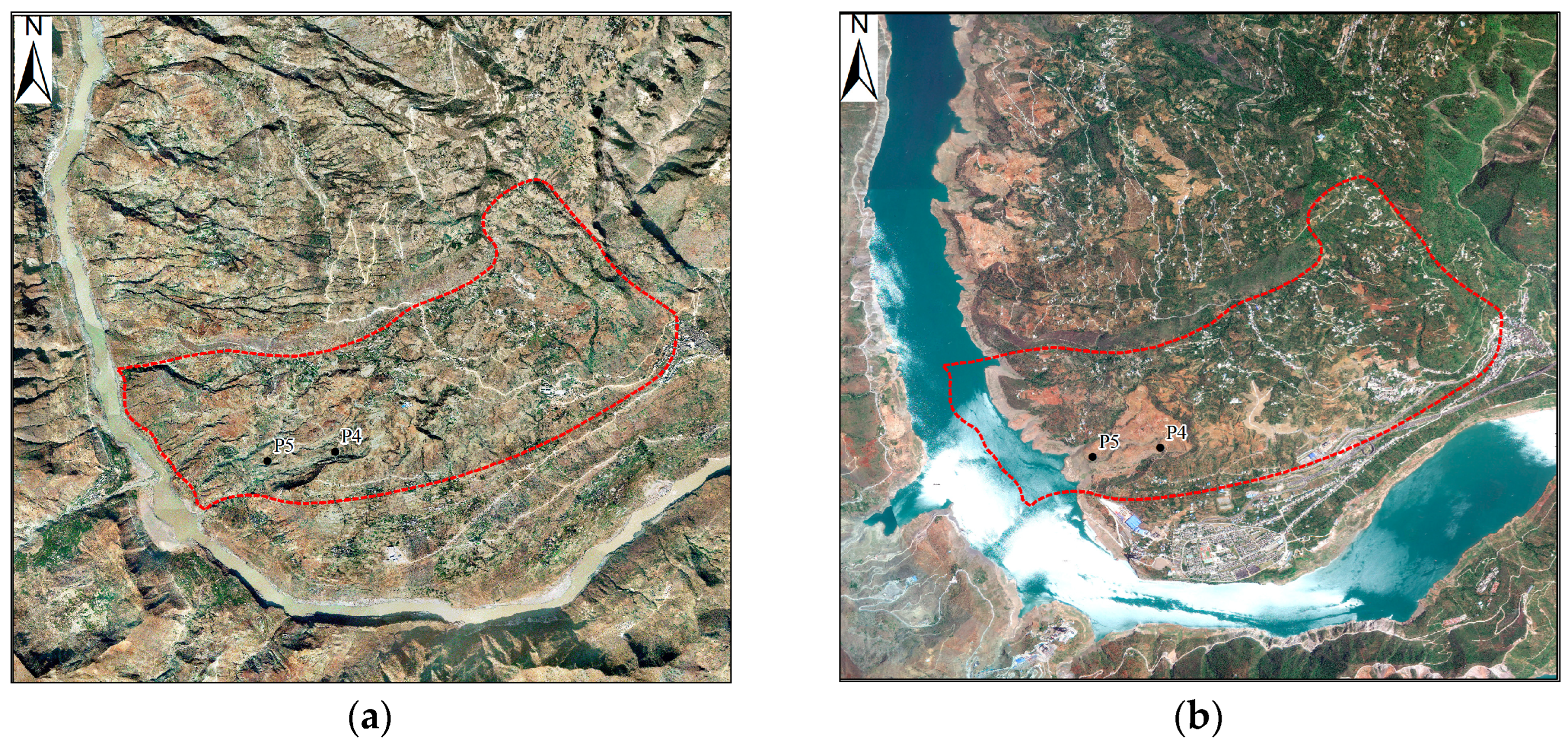 - Zhang, P.; Li, W.L.; Lu, H.Y.; Zhou, S.; Li, W.M.; Xu, S.M. Response relationship between deformation characteristics of active landslides in reservoir area and reservoir water level variation based on SBAS-InSAR: A case study of Maoergai Hydropower Station in Heishui County, Sichuan Province. Sci. Technol. Eng. 2024, 24, 11991–12002. [Google Scholar]