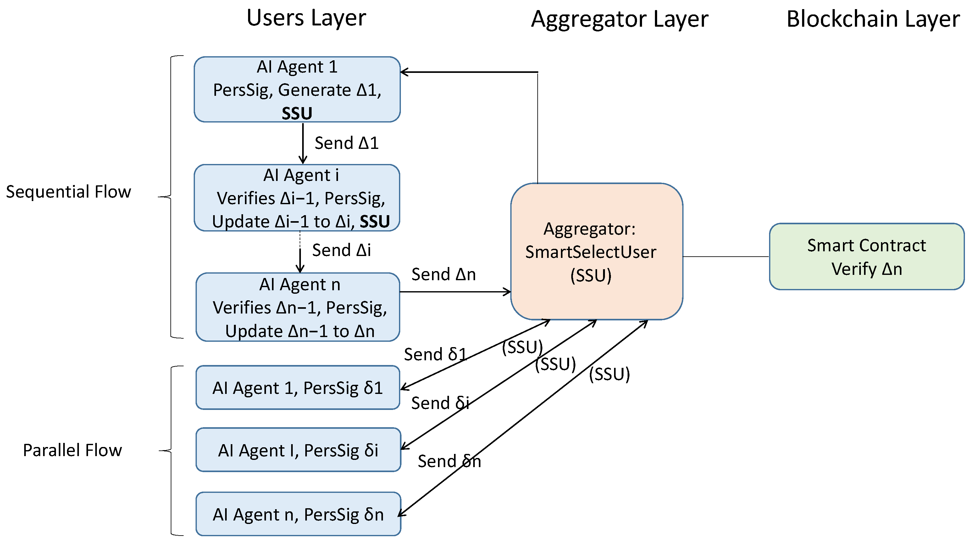 The protocol supports two execution modes: a parallel mode, suitable for high-throughput scenarios, and an asynchronous sequential mode, where signers are dynamically selected through the context-aware SmartSelectUser function. This dual-mode architecture provides flexibility between performance efficiency and adaptive resilience under heterogeneous network conditions.