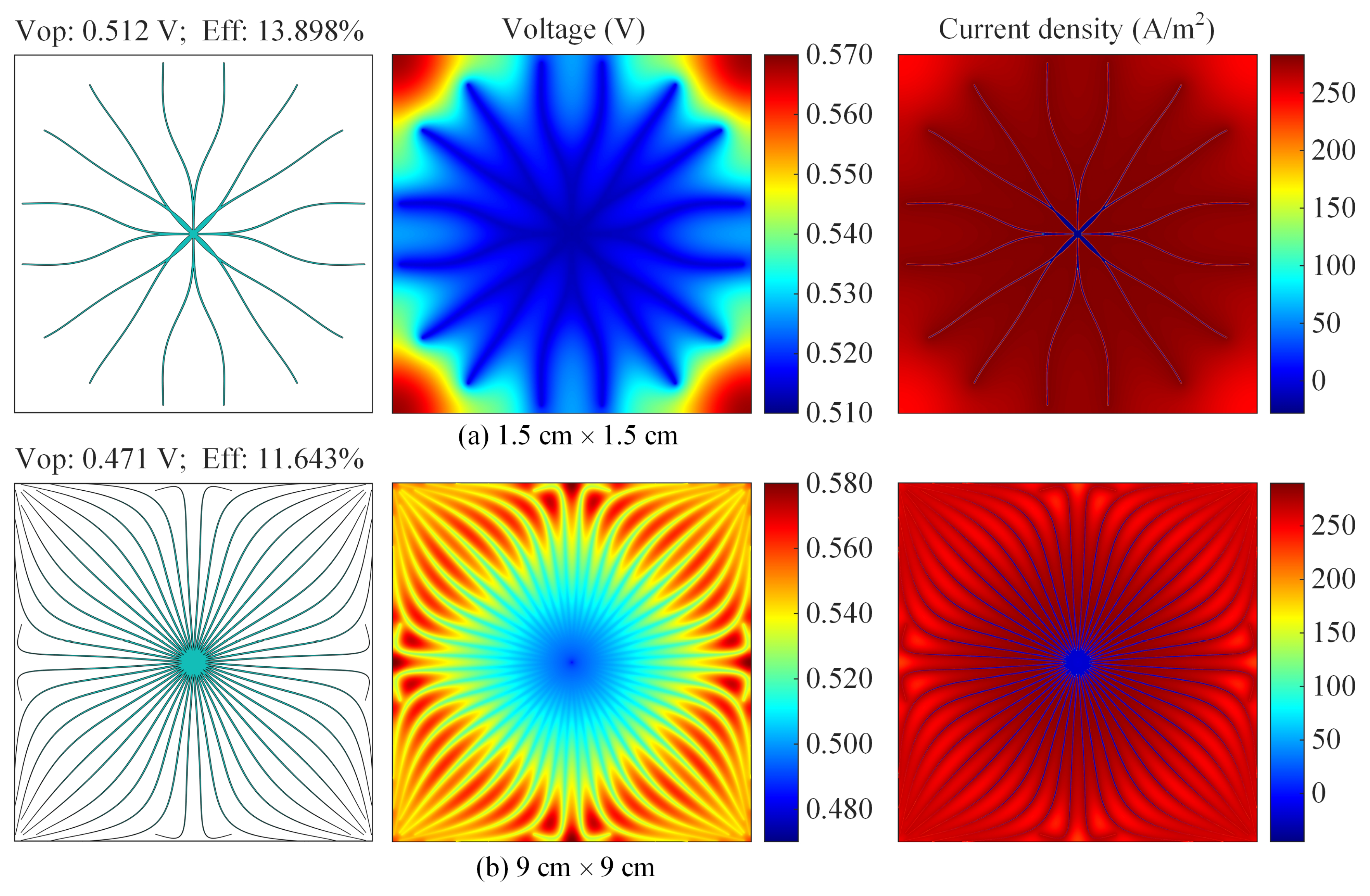 - Li, K.; Yang, Z.; Zhang, X. Size optimization of the front electrode and solar cell using a combined finite-element-genetic algorithm method. J. Photonics Energy 2021, 11, 034502. [Google Scholar] [CrossRef]
