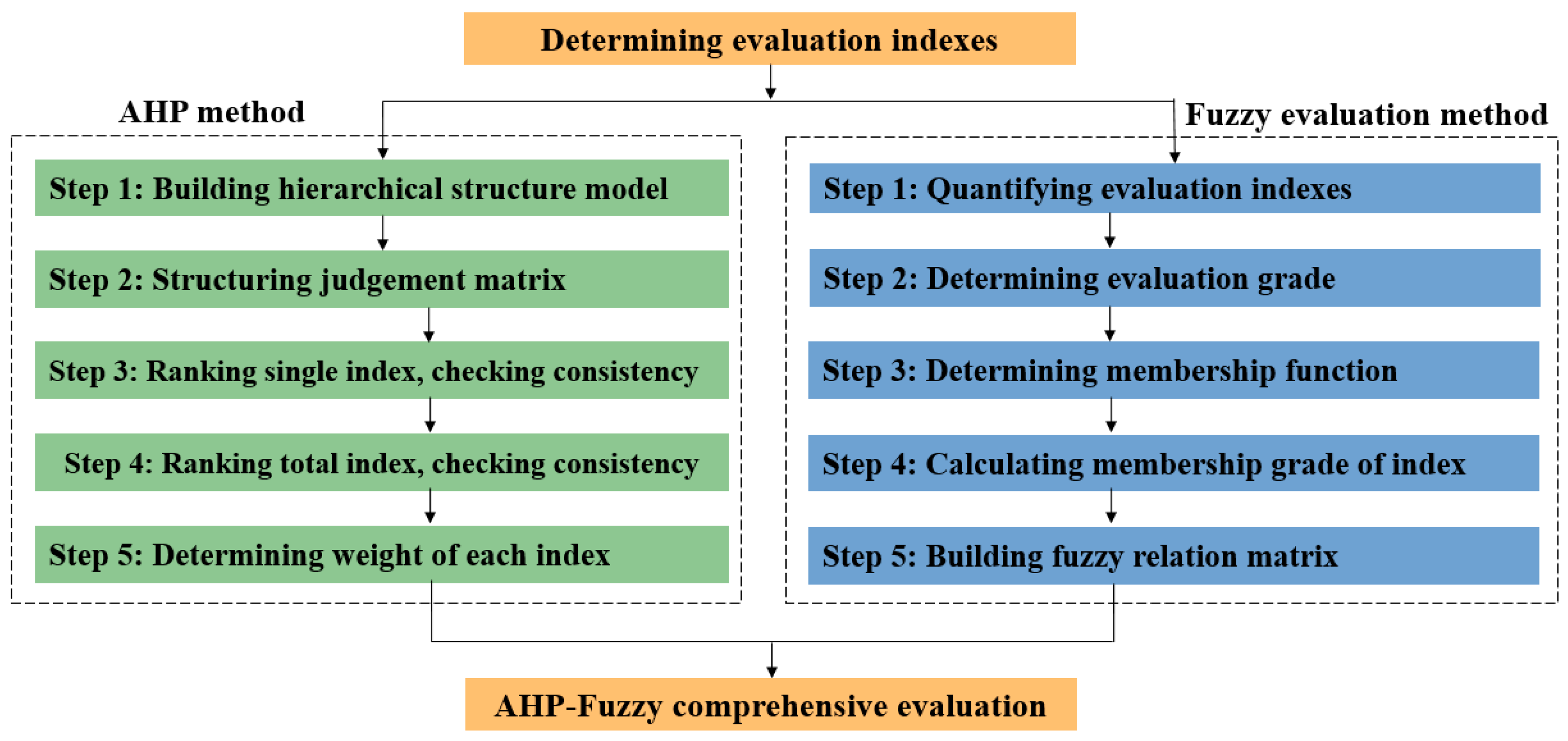 68]. Hu used the AHP method to determine the weights of the evaluation indexes in the assessment system of enterprise wastewater treatment [