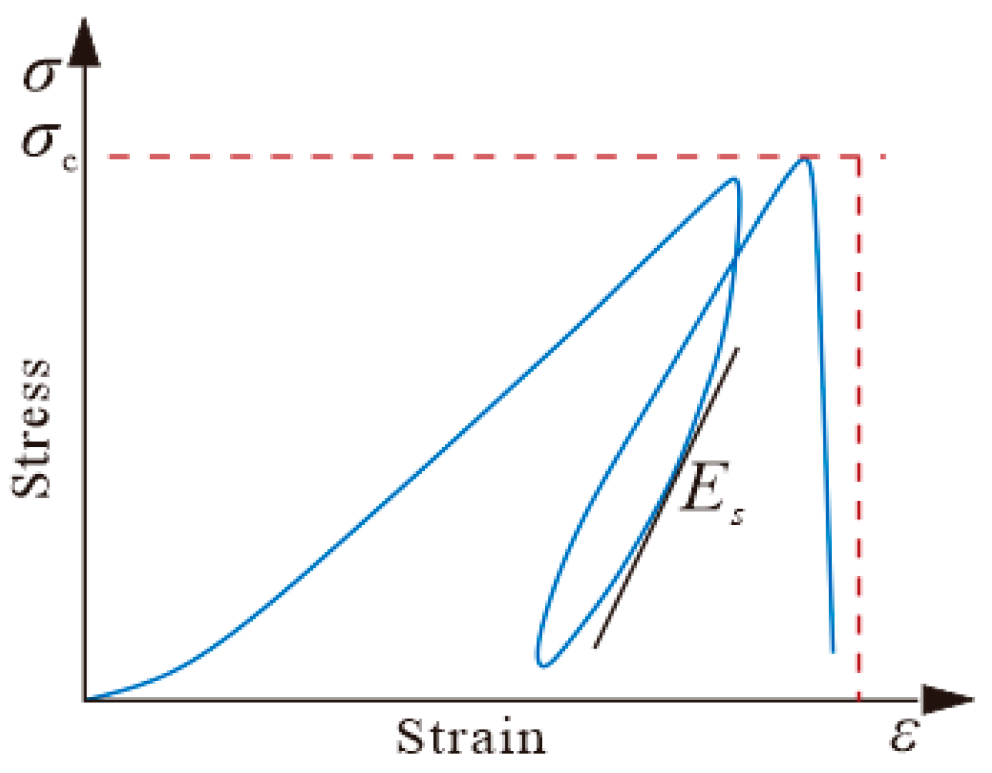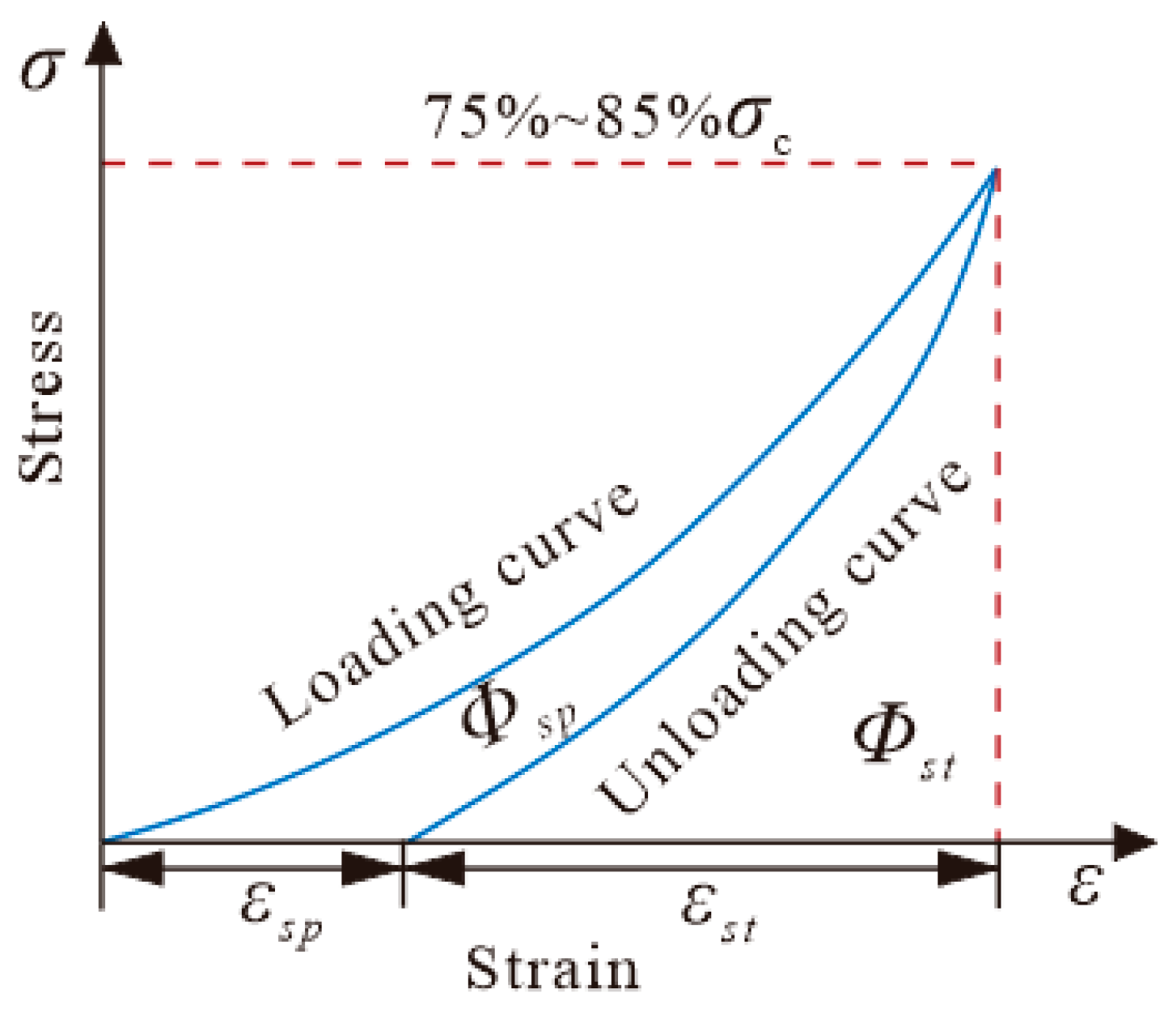 21]. Based on the consideration of the pre-peak energy dissipation, strain energy accumulation, and post-peak energy dissipation, a novel evaluation index