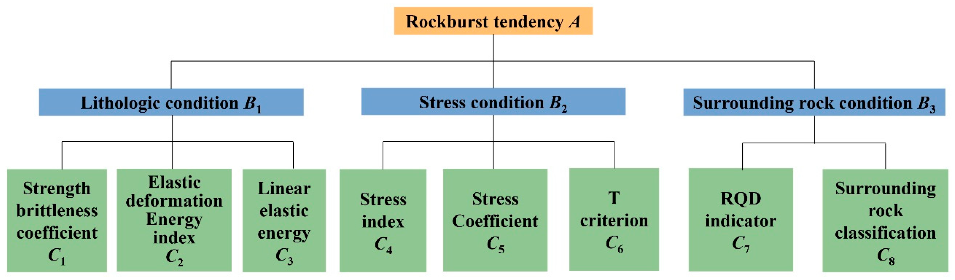 24] studied the basic criteria of rock mass conditions and the geological factors for predicting rockbursts. Tan [